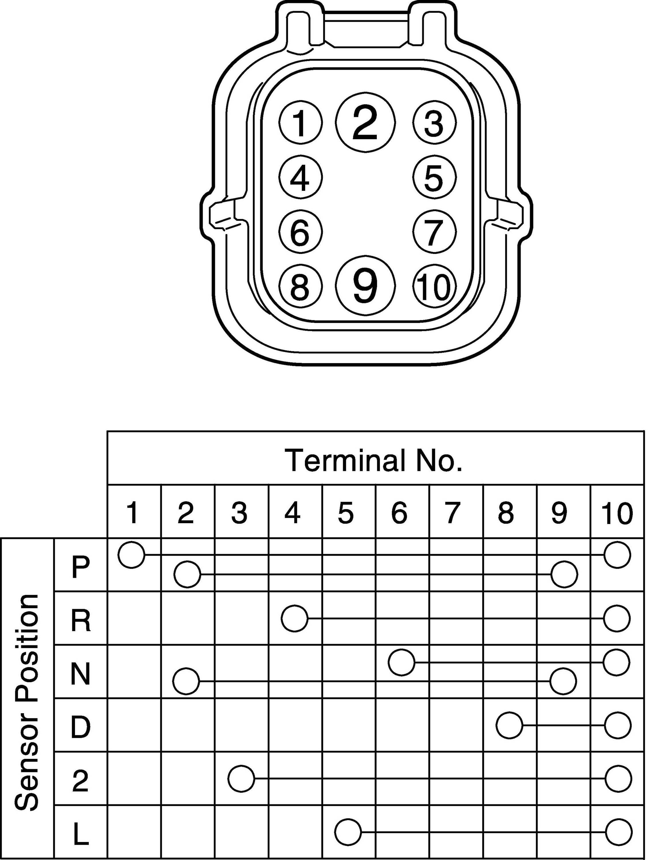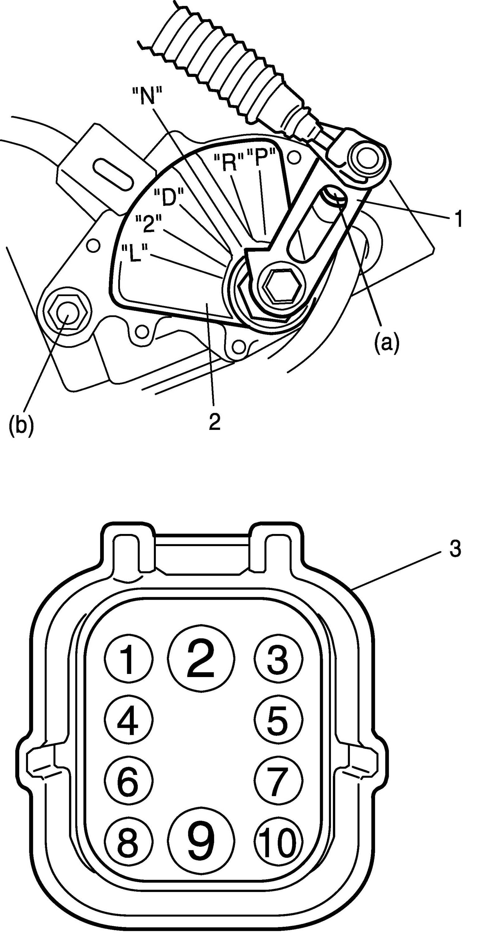 1. Disconnect transmission range sensor connector (1).