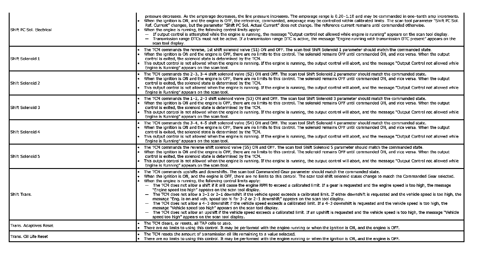 The Transmission Control Module Scan Tool Data List contains all transmission related parameters that are available on the scan tool. The list is arranged in alphabetical order. A given parameter may appear in any one of the data lists, and in some cases may appear more than once, or in more than one data list in order to group certain related parameters together. The values below represent a typical display recorded from a properly functioning system.