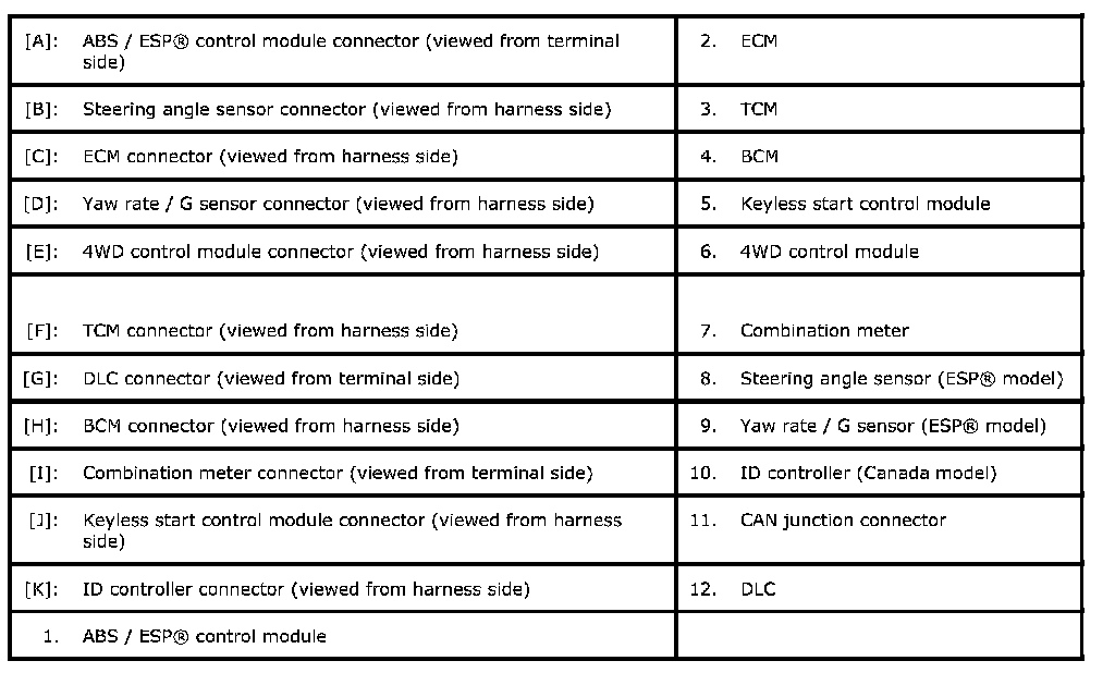 ^ When disconnecting each control module connector in this troubleshooting, various DTCs will be detected. Be sure to clear DTCs in the following control modules after completing this troubleshooting.