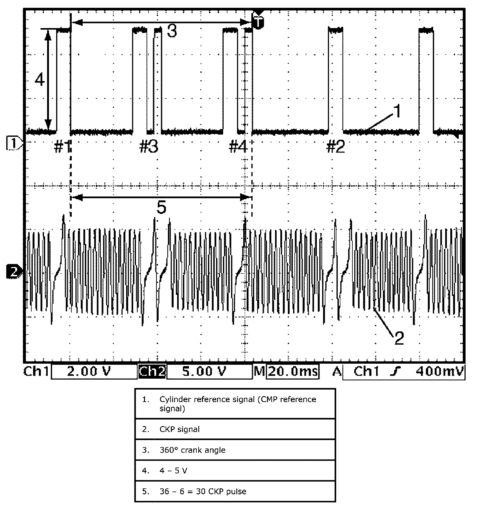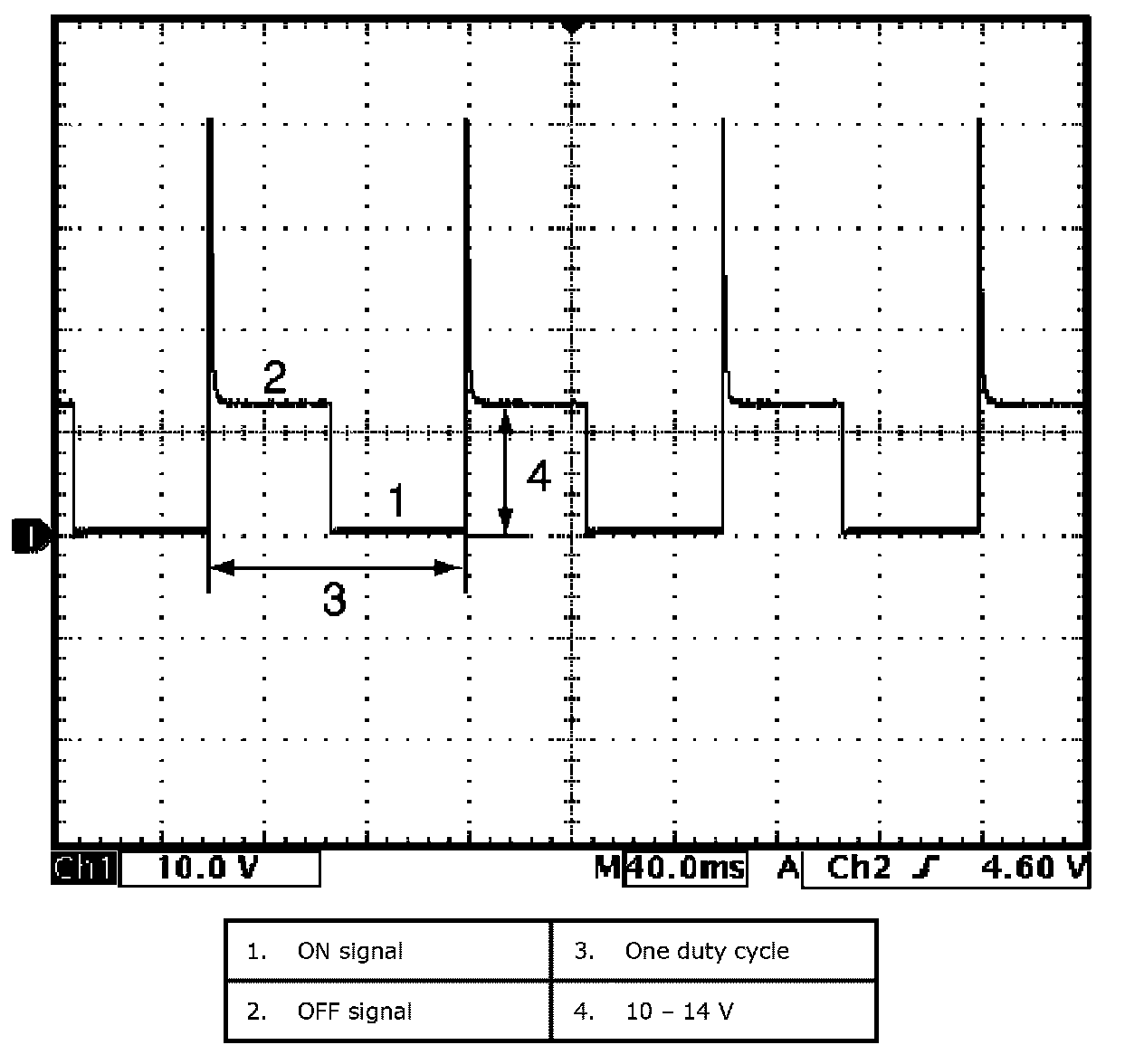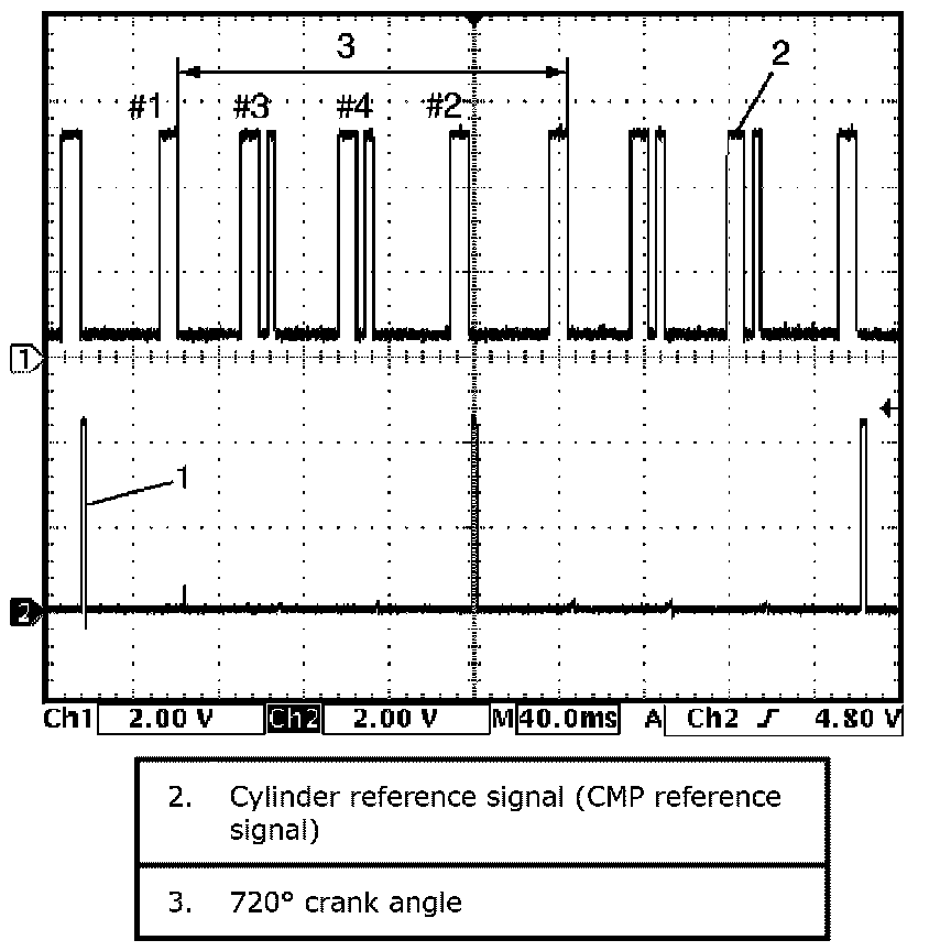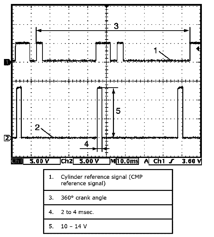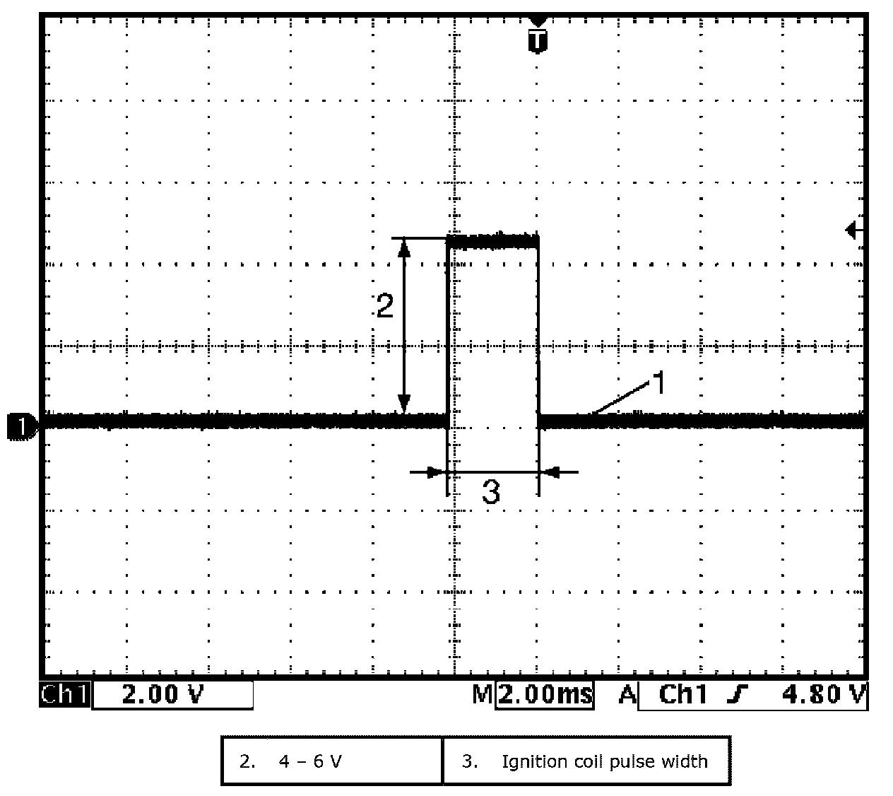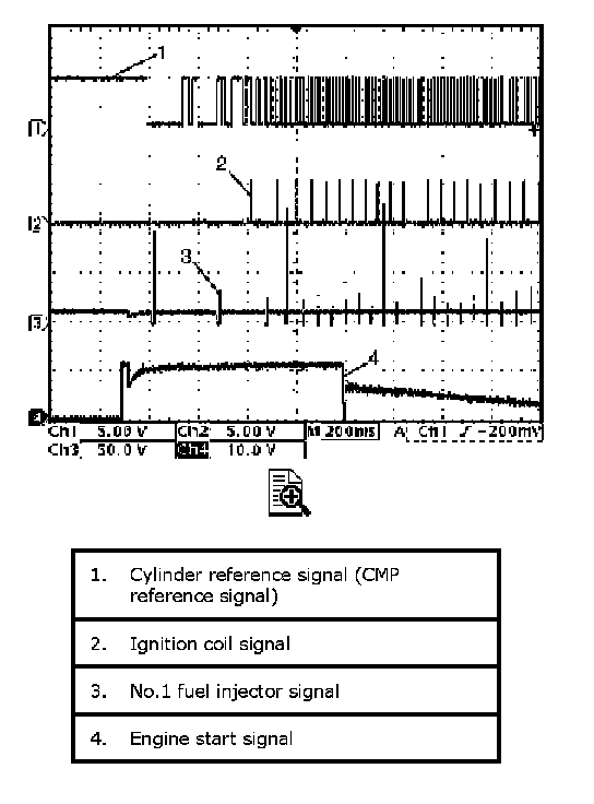 Reference waveform No.1Fuel injector signal (1) with engine idling