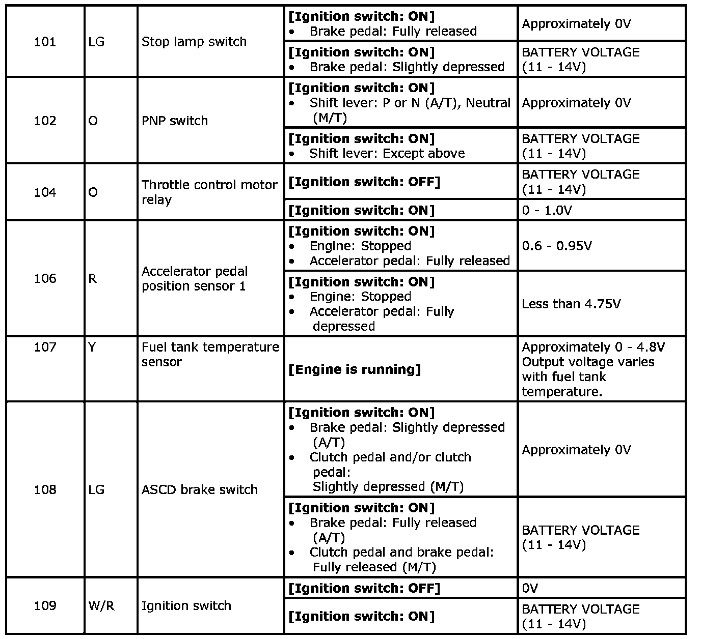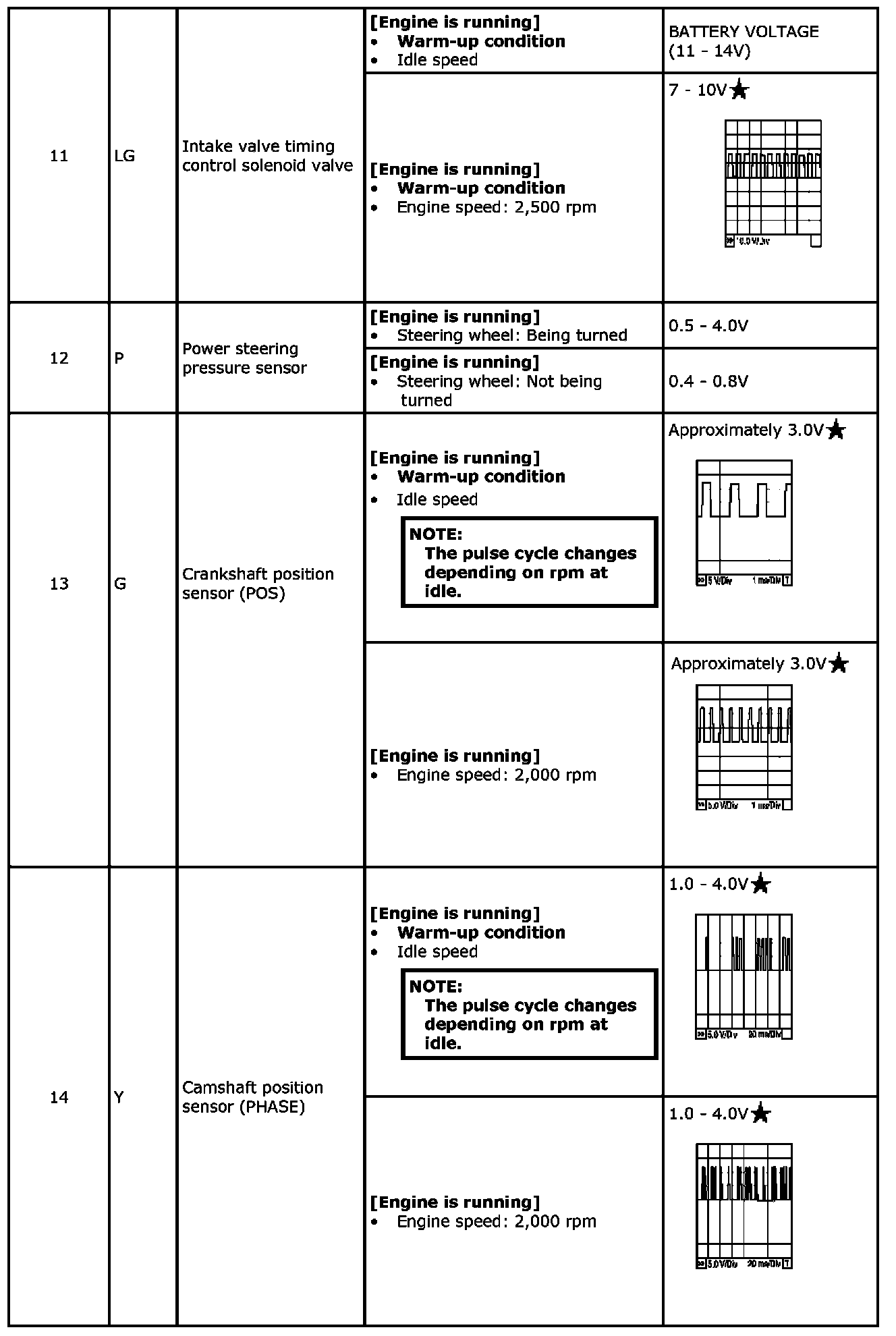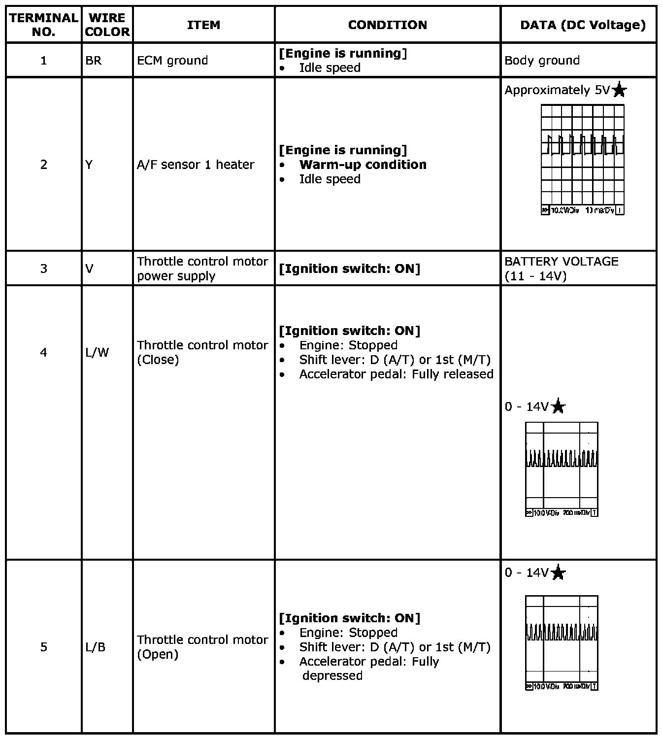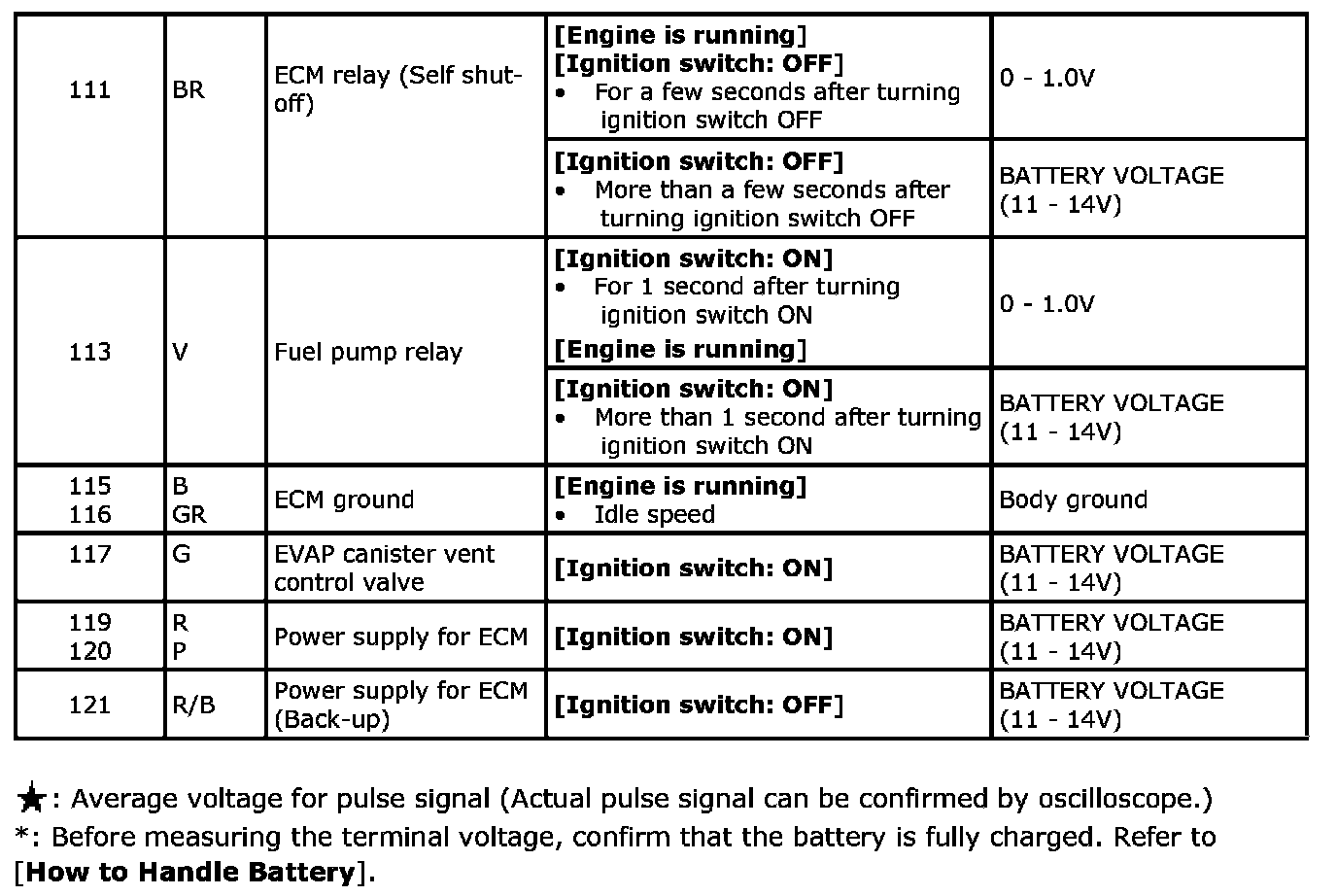 Specification data are reference values and are measured between each terminal and ground.Pulse signal is measured by SDT.