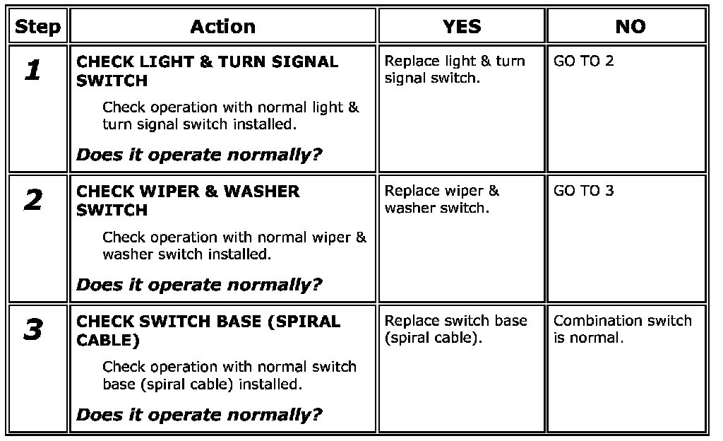 Home >> Suzuki >> 2009 >> Equator 2WD L4-2.5L >> Repair and Diagnosis >> Powertrain Management >> Computers and Control Systems >> Body Control Module >> Testing and Inspection >> Component Tests and General Diagnostics >> Combination Switch Circuit Check