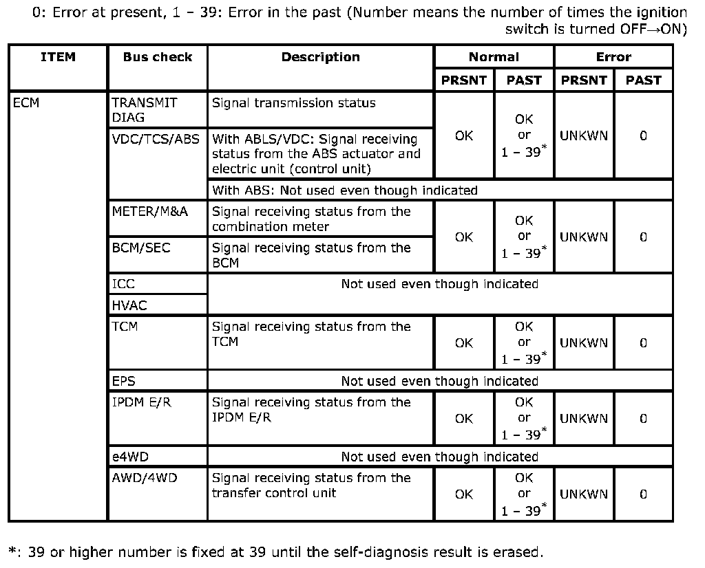 0: Error at present, 1 - 39: Error in the past (Number means the number of times the ignition switch is turned OFF -> ON)