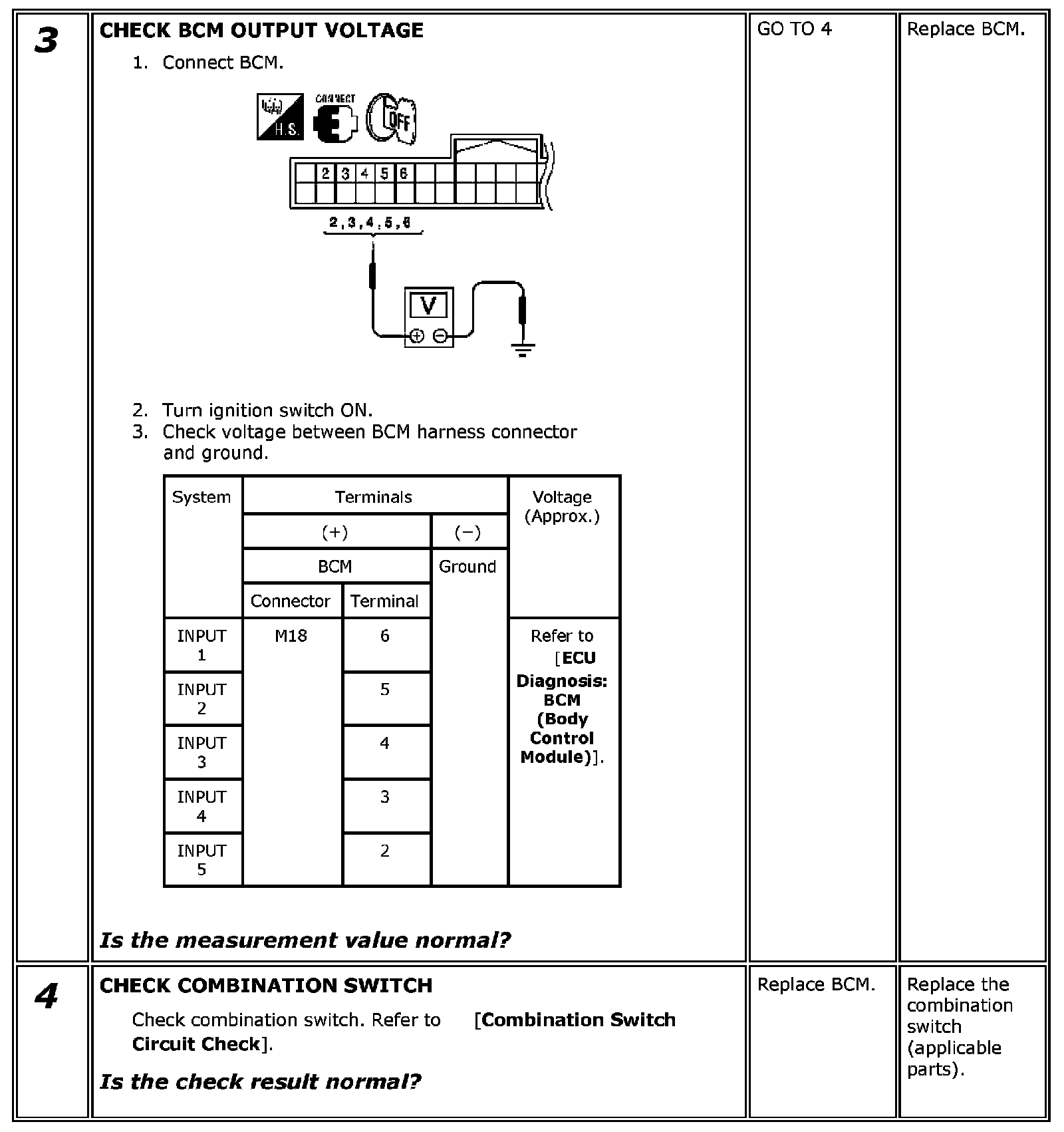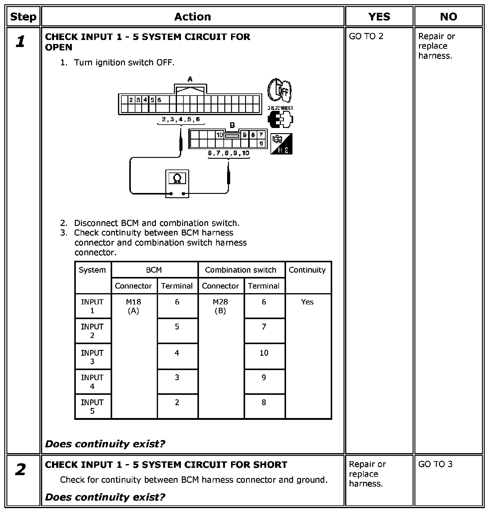 Combination Switch Input Circuit Check
