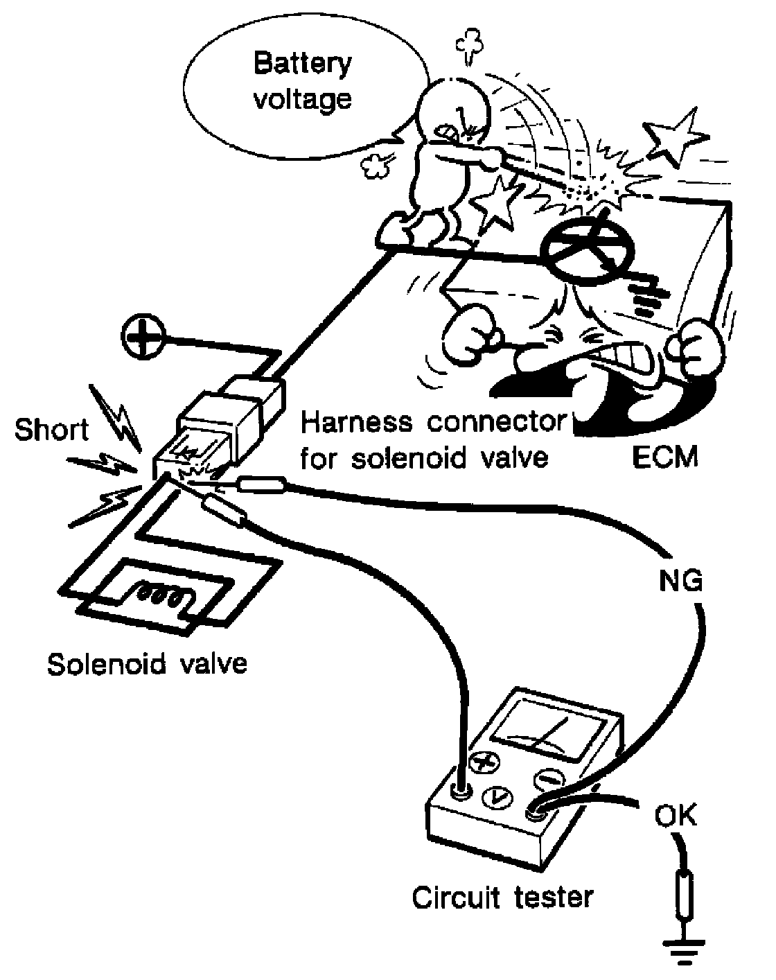 - Do not use ECM ground terminals when measuring input/output voltage.Doing so may result in damage to the ECM's transistor. Use a ground other than ECM terminals, such as the ground.