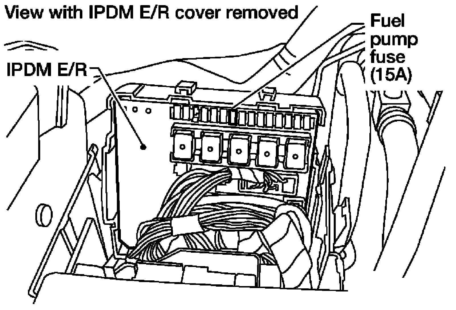 7. Remove fuel pump fuse in IPDM E/R to release fuel pressure.