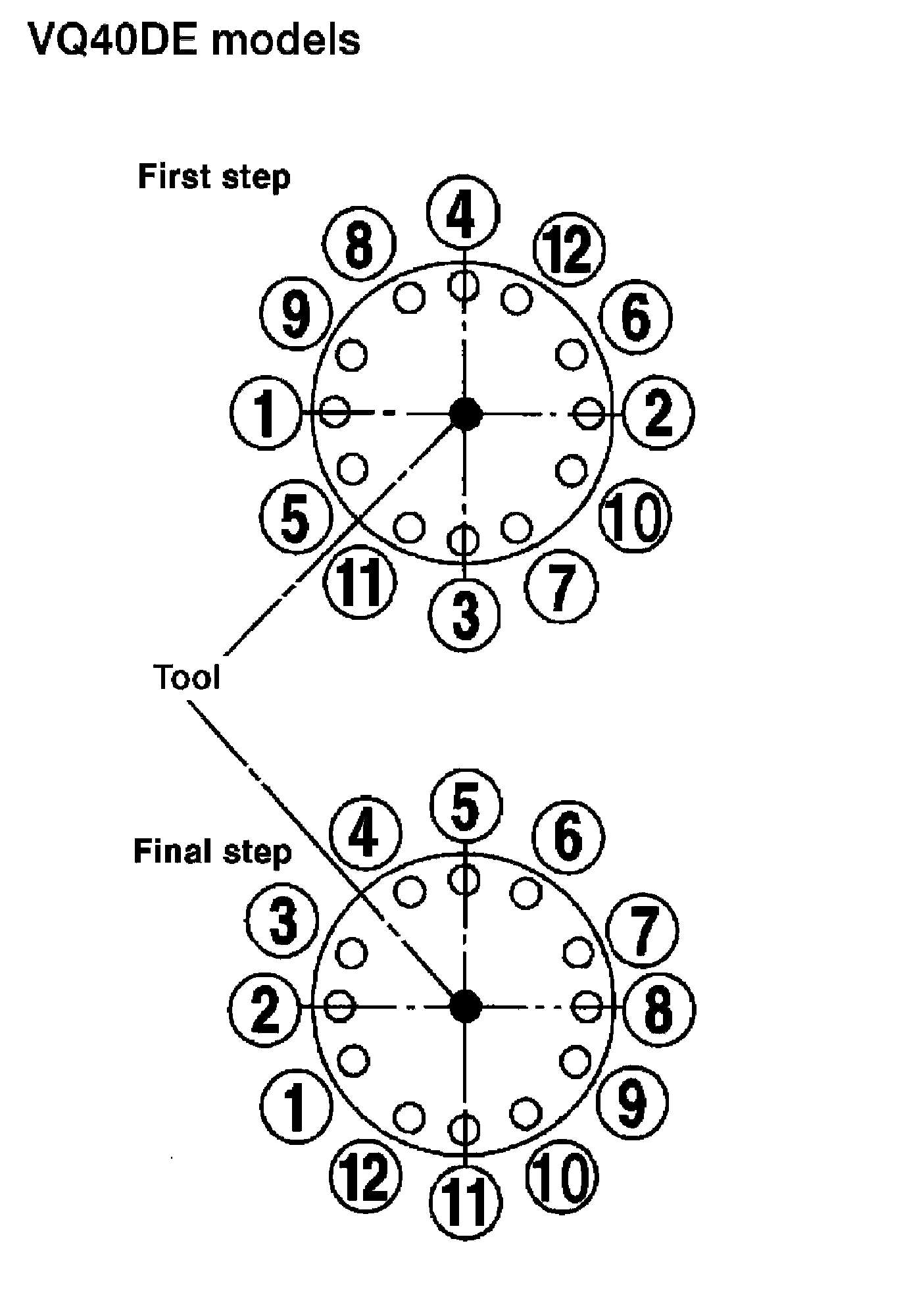 First step 15 N-m (1.5 kg-m, 11 ft-lb)