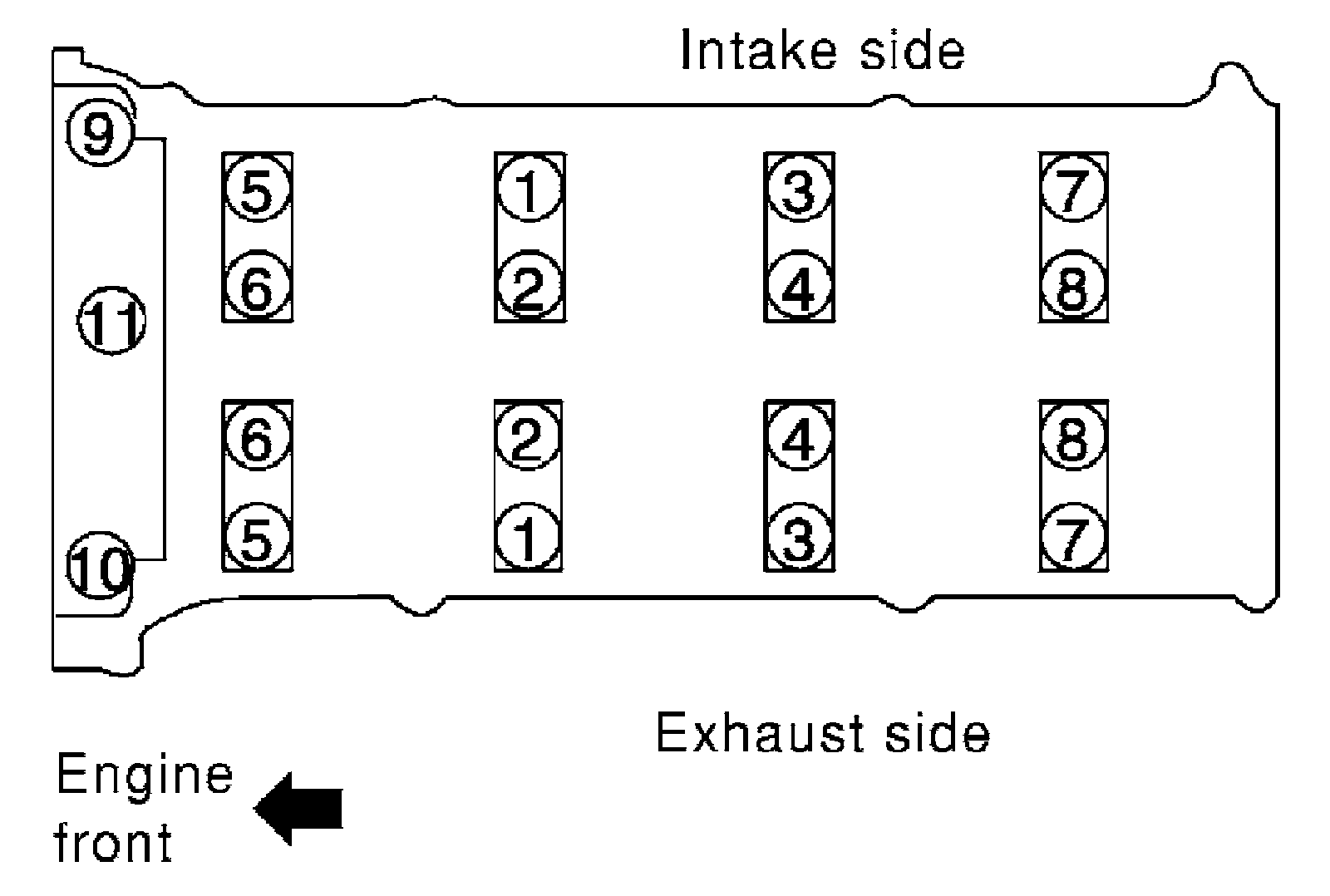 Step 4 (bolts 1 - 11): 10.4 N-m (1.1 kg-m, 92 in-lb)