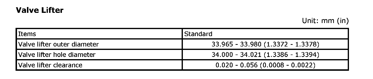 Difference in inner diameter between cylinders - Standard - Less than 0.03mm (0.0012 in)