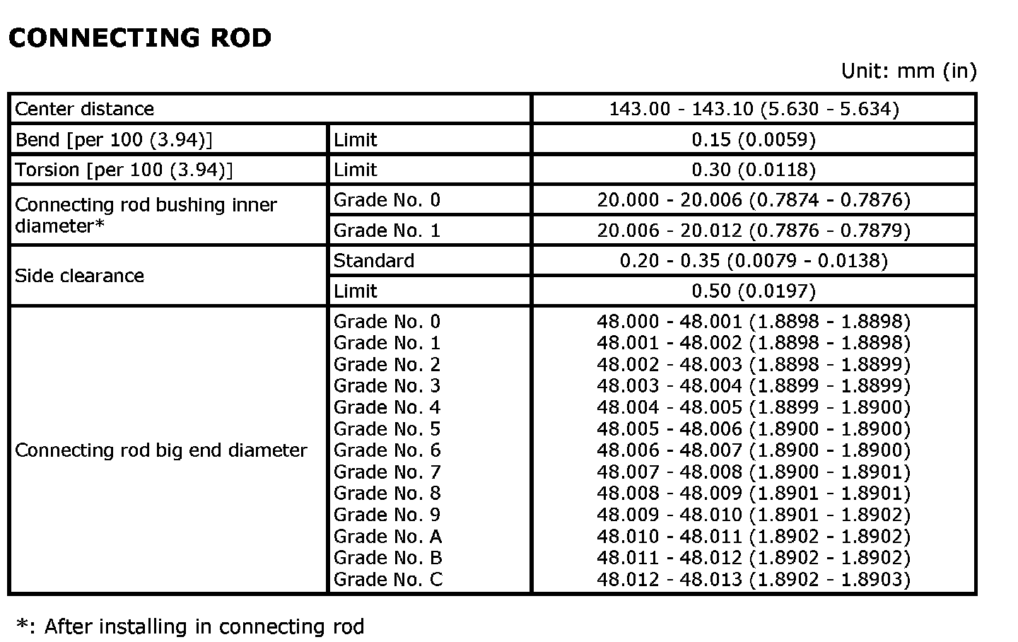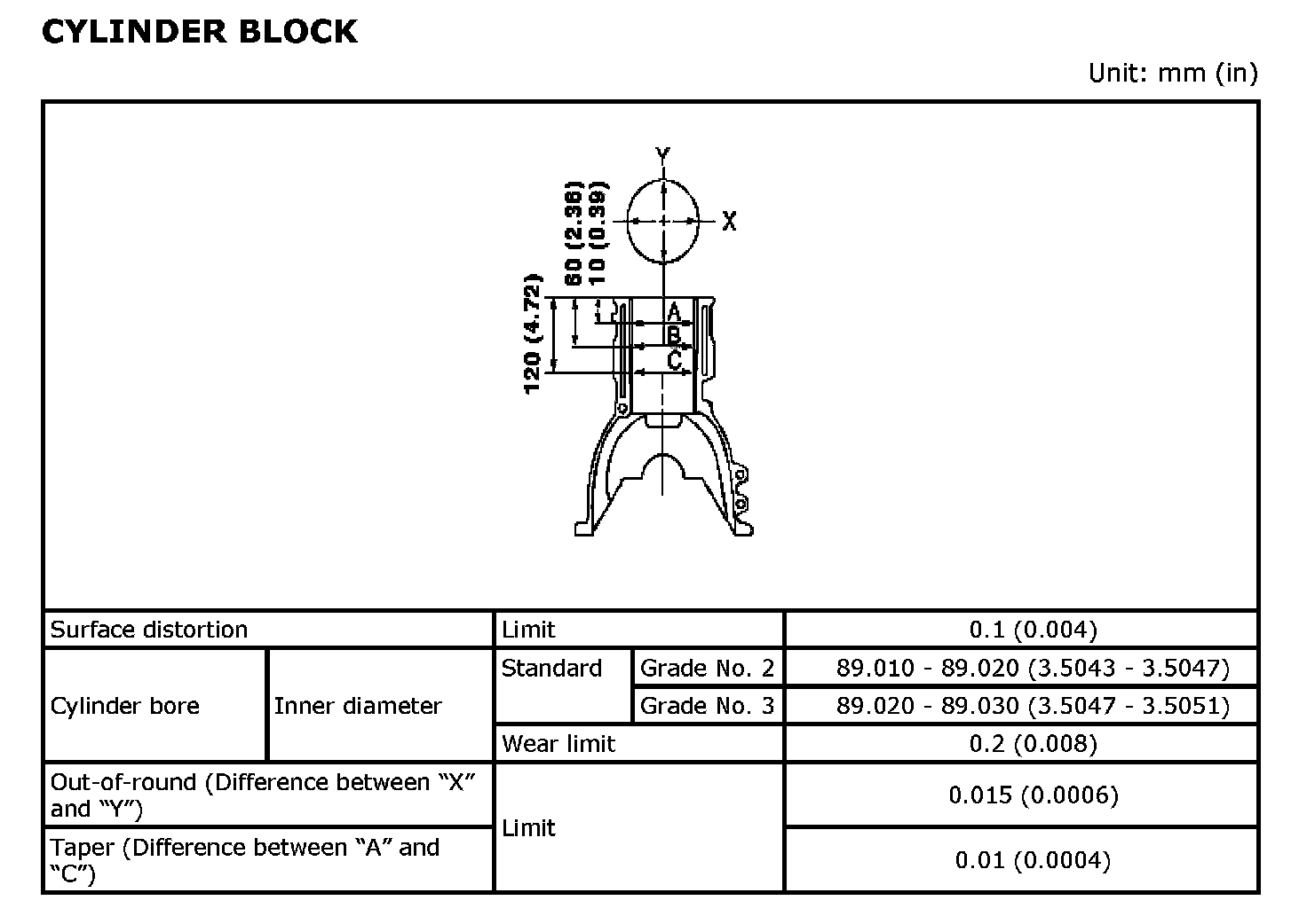Grade No. Y 58.965 - 58.966 mm (2.3215 - 2.3215 in)