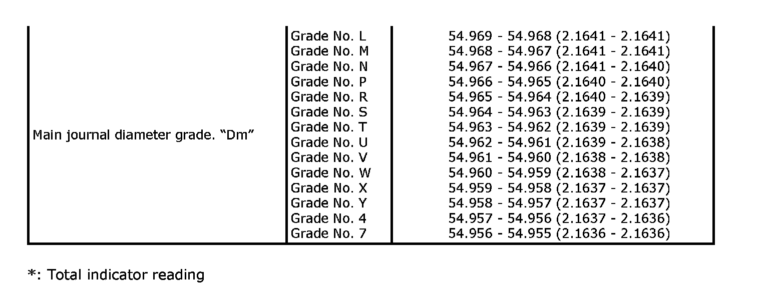 Grade No. L 58.954 - 58.955 mm (2.3210 - 2.3211 in)