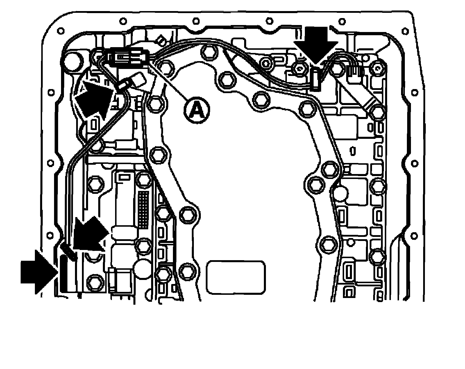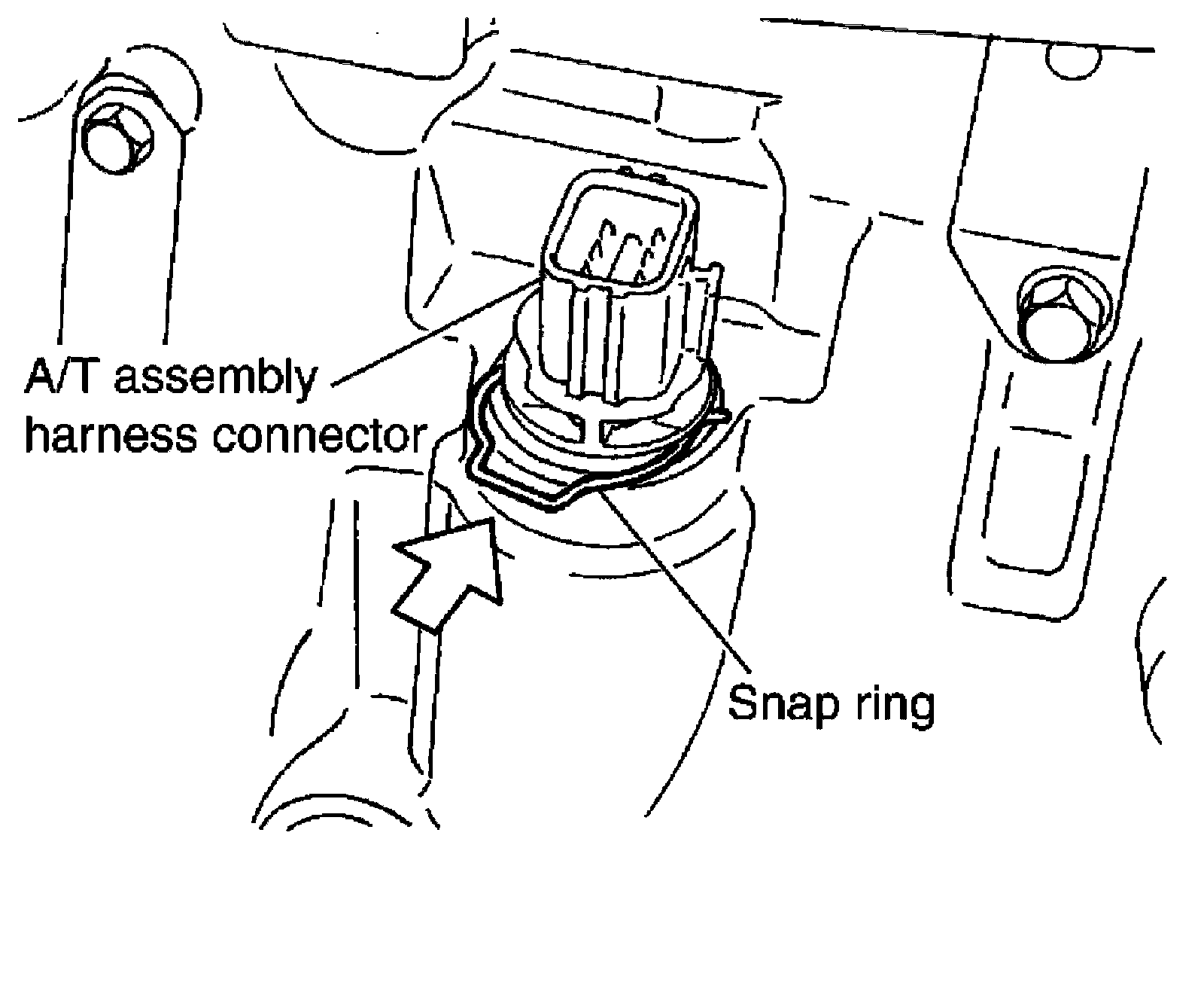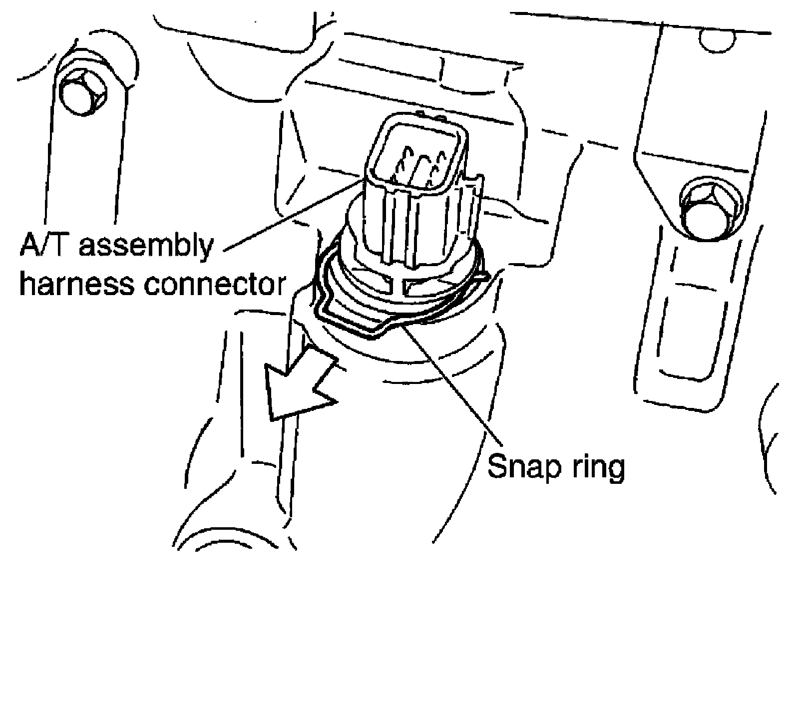 ^ Hang down revolution sensor harness toward outside so as not to disturb installation of control valve with TCM.