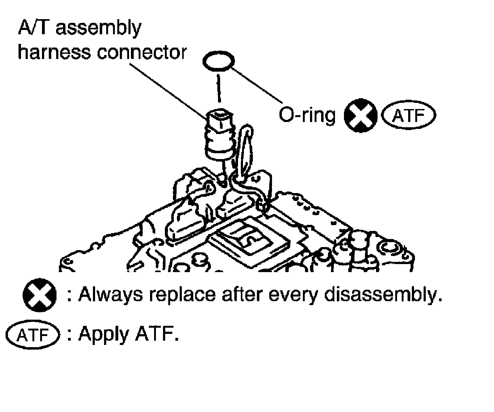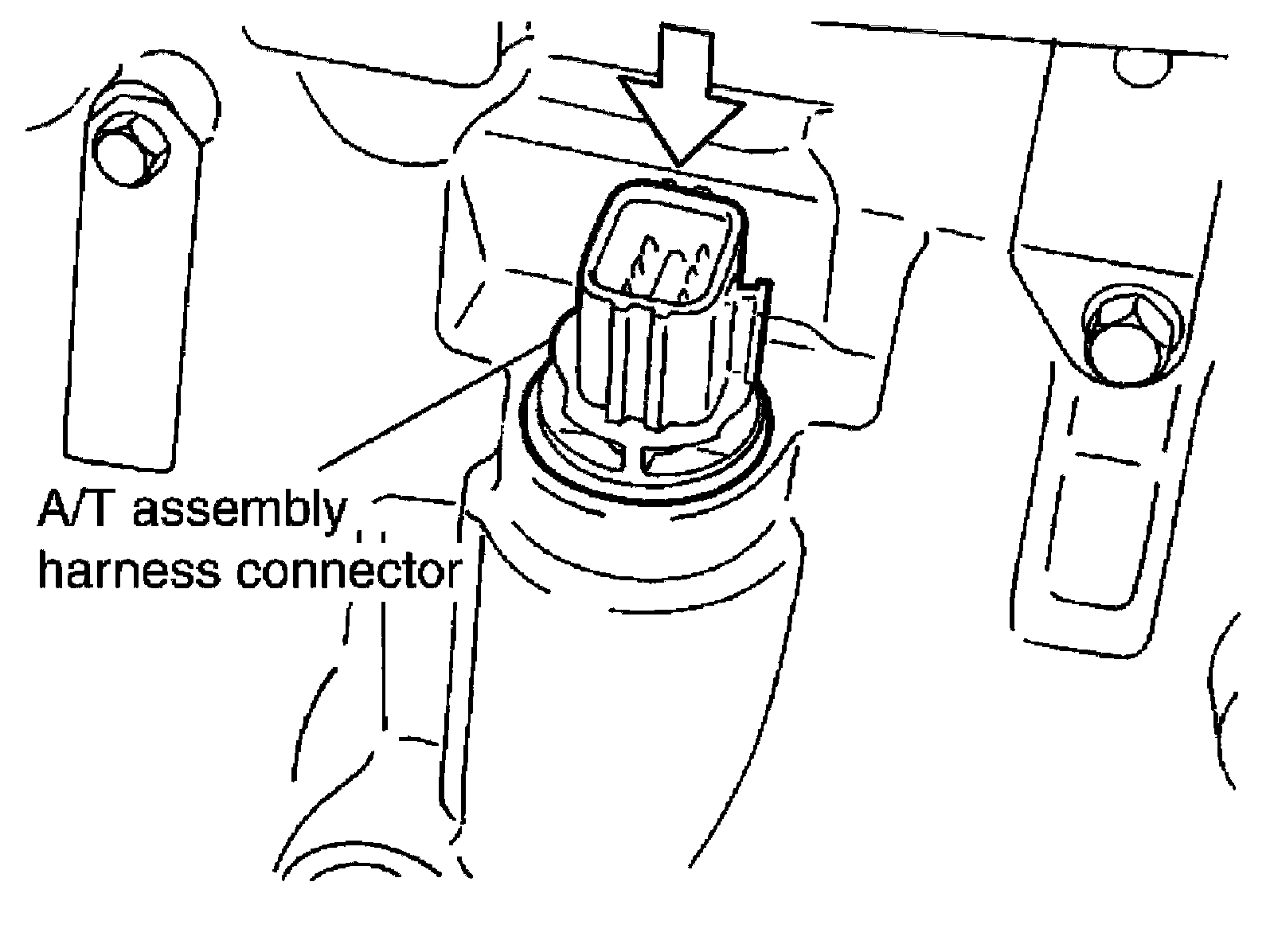 7) Disconnect A/T fluid temperature sensor 2 connector (A).