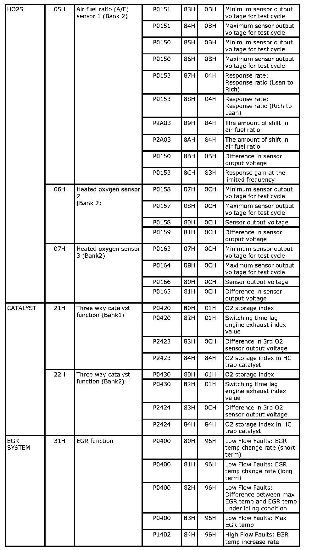 These data (test value and test limit) are specified by On Board Monitor ID(OBDMID), Test ID (TID), Unit and Scaling ID and can be displayed on the GST screen.