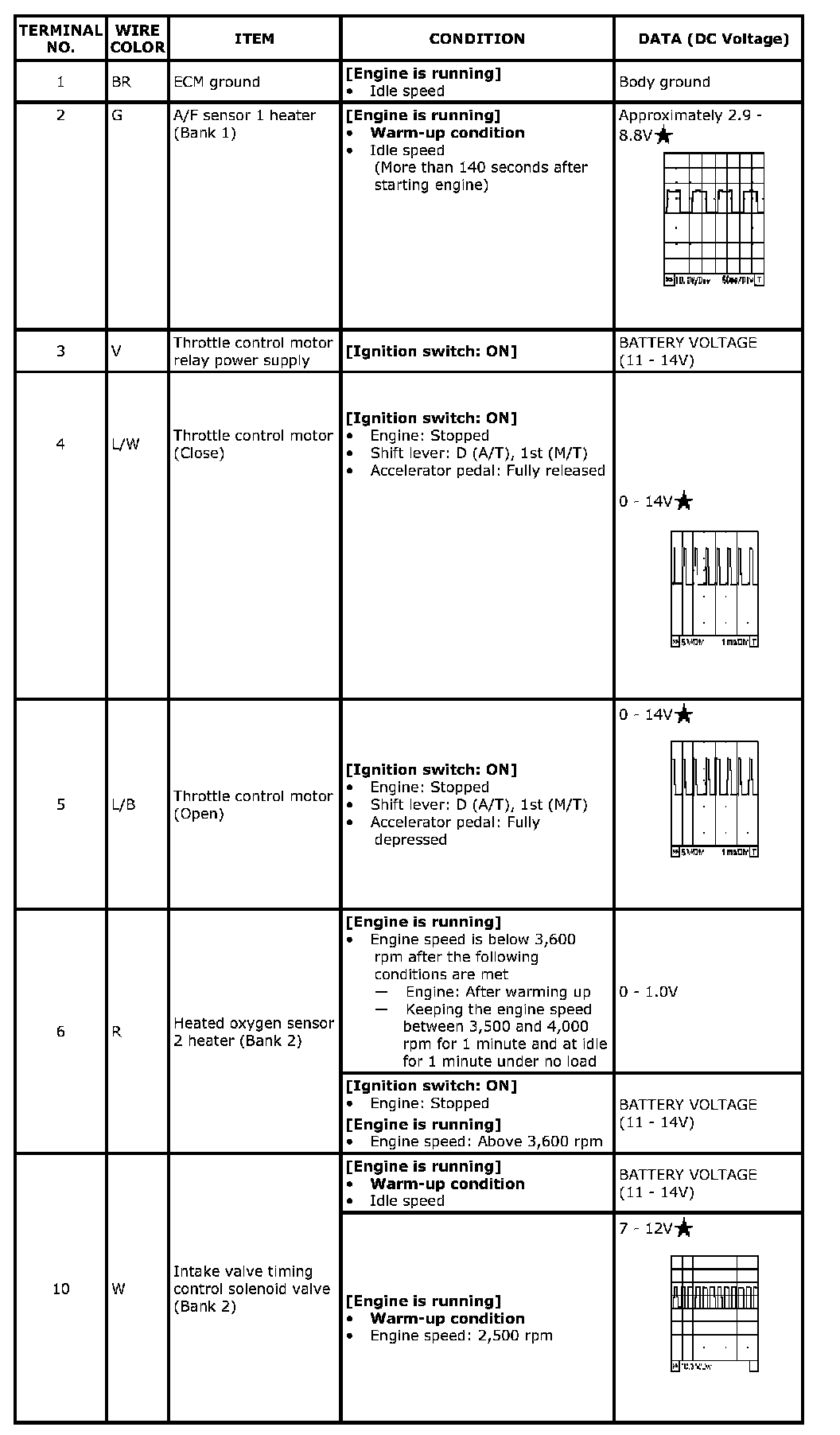 Home >> Suzuki >> 2009 >> Equator 2WD V6-4.0L >> Repair and Diagnosis >> Powertrain Management >> Relays and Modules - Powertrain Management >> Relays and Modules - Computers and Control Systems >> Engine Control Module >> Testing and Inspection >> Scan Tool Testing and Procedures >> ECM Terminal and Reference Value