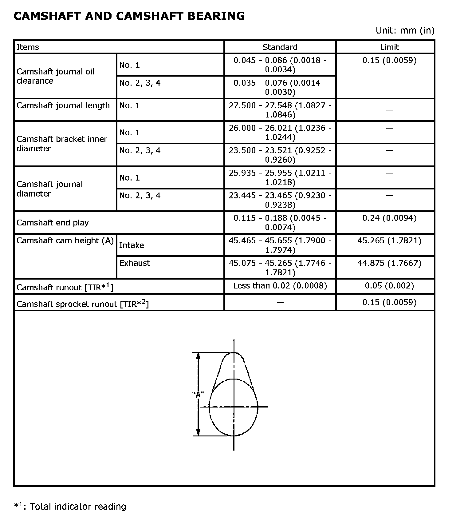 CAMSHAFT AND CAMSHAFT BEARING