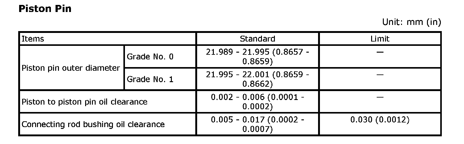 Connecting rod bolt: 19.6 N-m (2.0 kg-m, 14 ft-lb)
