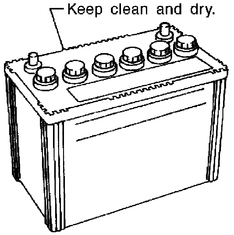 - The battery surface (particularly its top) should always be kept clean and dry.