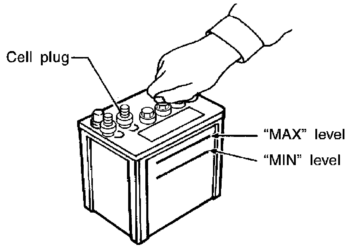 - At every routine maintenance, check the electrolyte level. This also applies to batteries designated as "low maintenance" and "maintenance-free".