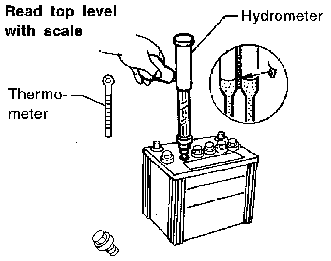 Periodically check the specific gravity of the electrolyte. Keep a close check on charge condition to prevent over-discharge.