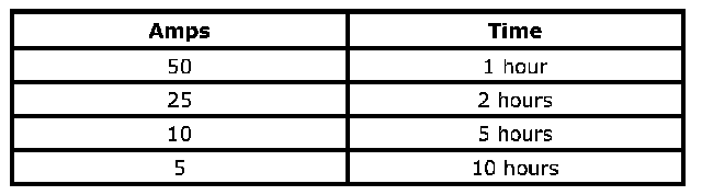 NOTE: The ammeter reading on your battery charger will automatically decrease as the battery charges. This indicates that the voltage of the battery is increasing normally as the state of charge improves. The charging amps indicated above refer to initial charge rate.