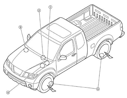 | TPMS Transmitter (5) | In respective tire. See Figure. |