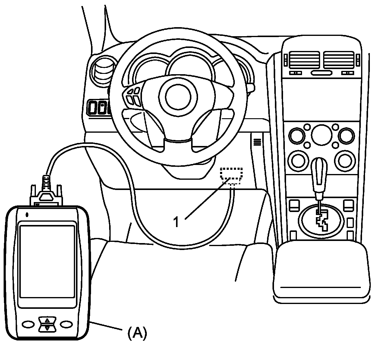 Registered VIN Data Check (EVAP-Leak-Check Model)1. Connect SUZUKI scan tool to data link connector (DLC) (1) located on underside of instrument panel at driver seat side.