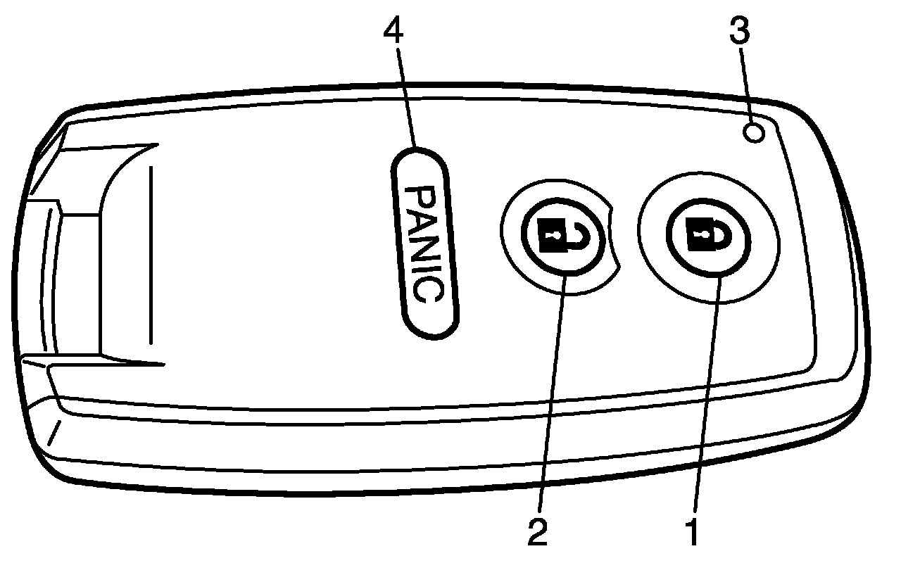 Check that remote controller operation indicator light (3) lights up when lock (1), unlock (2) or panic (4) button of remote controller is pushed.