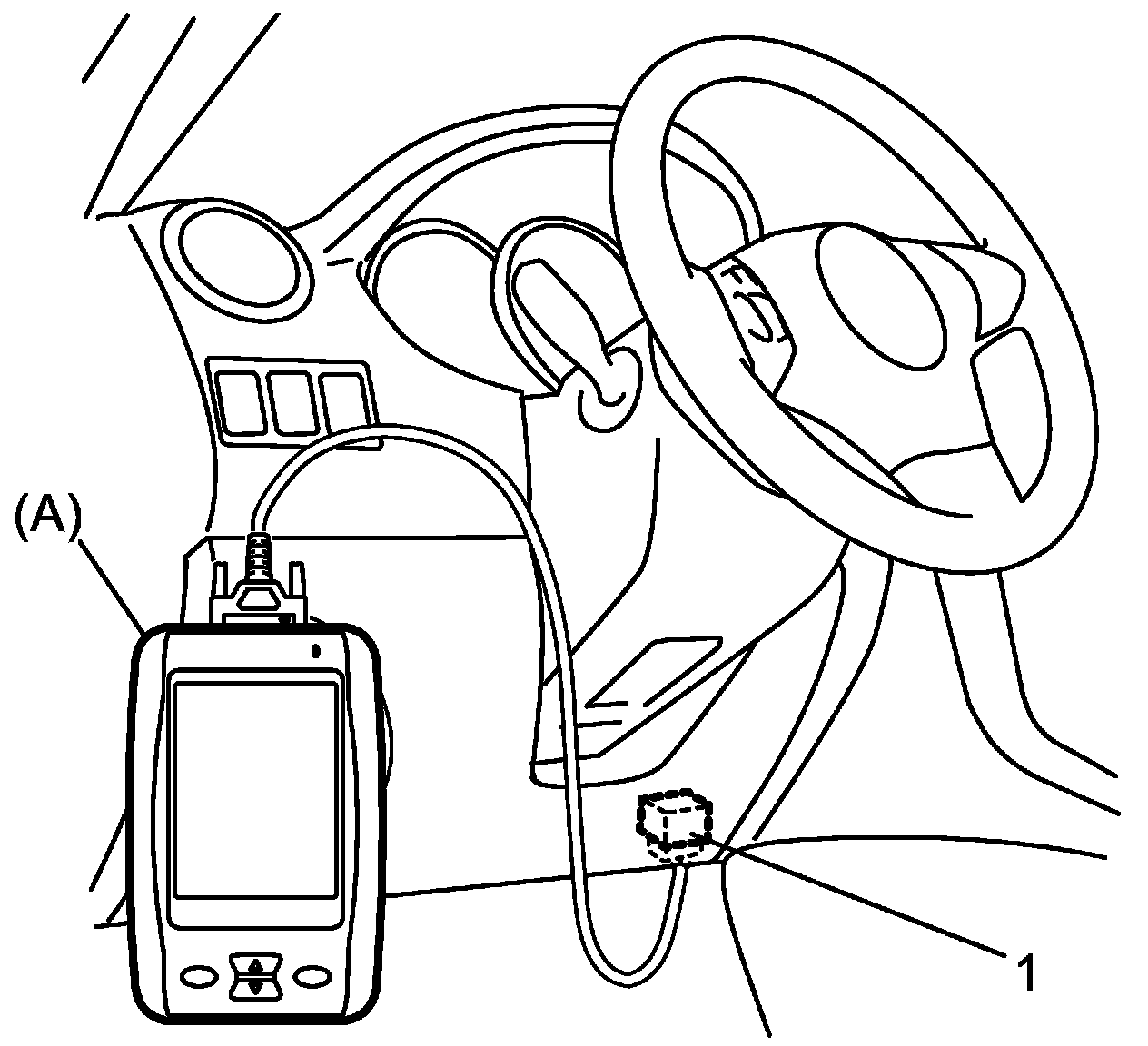 VIN Registration1. Connect SUZUKI scan tool to data link connector (DLC) (1) located on under side of instrument panel at driver seat side.