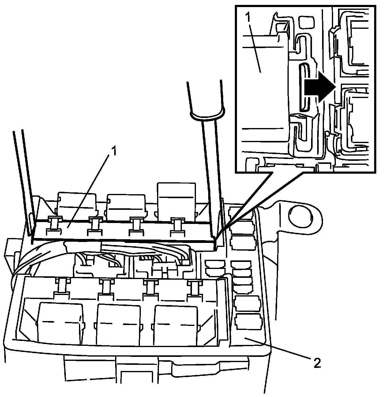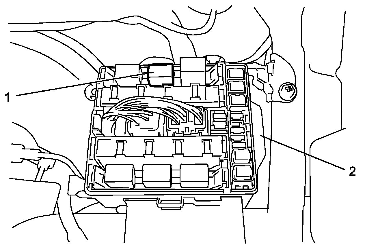 2. Remove integration relay No.2 (1) from fuse box (2).