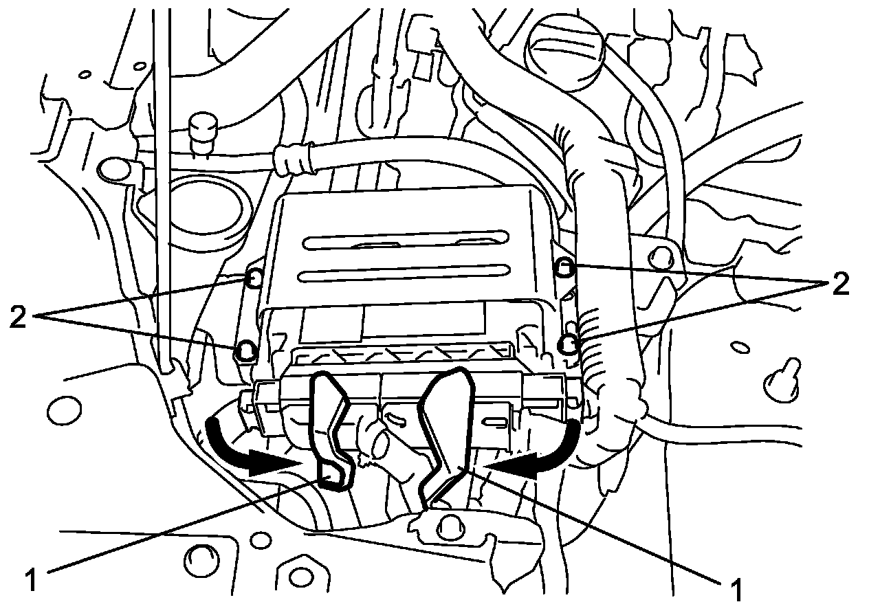 3. Remove ECM and cover from bracket by removing their mounting bolts (2).