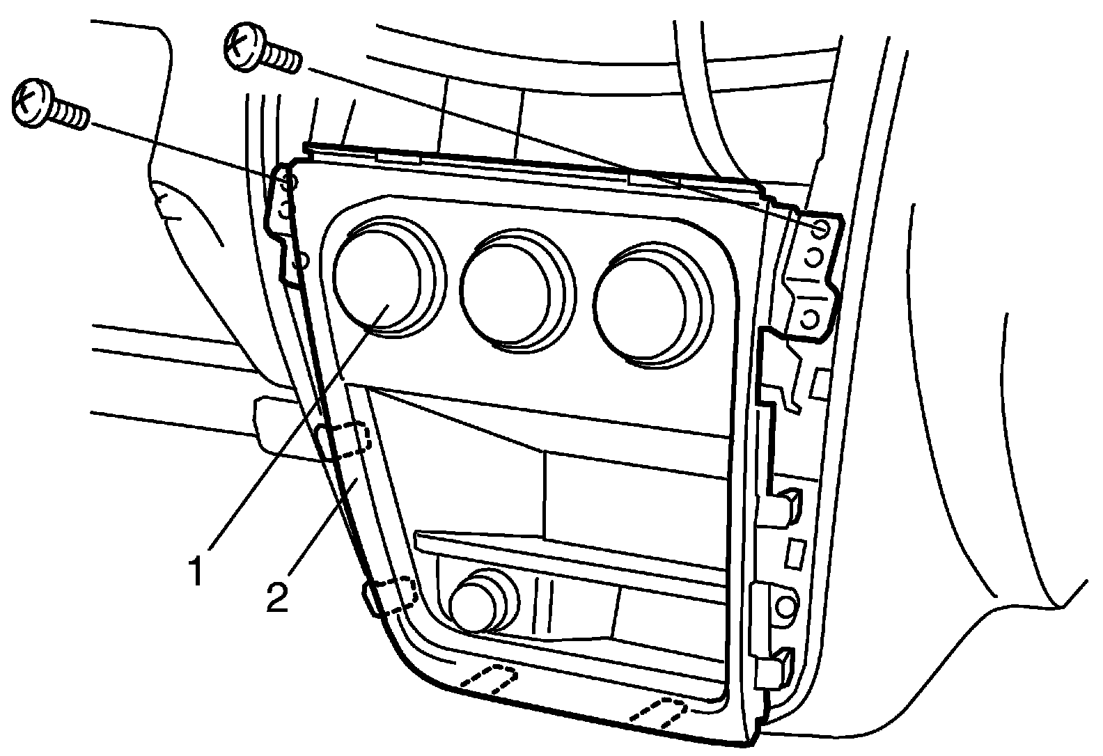2. Remove HVAC control module (1) with its garnish (2) from instrument panel.