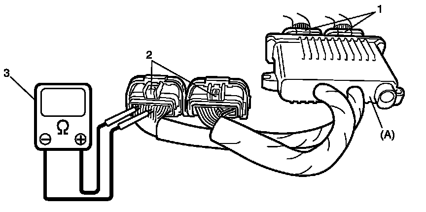 CAUTION: Never touch terminals of ECM itself or connect voltmeter or ohmmeter (3).