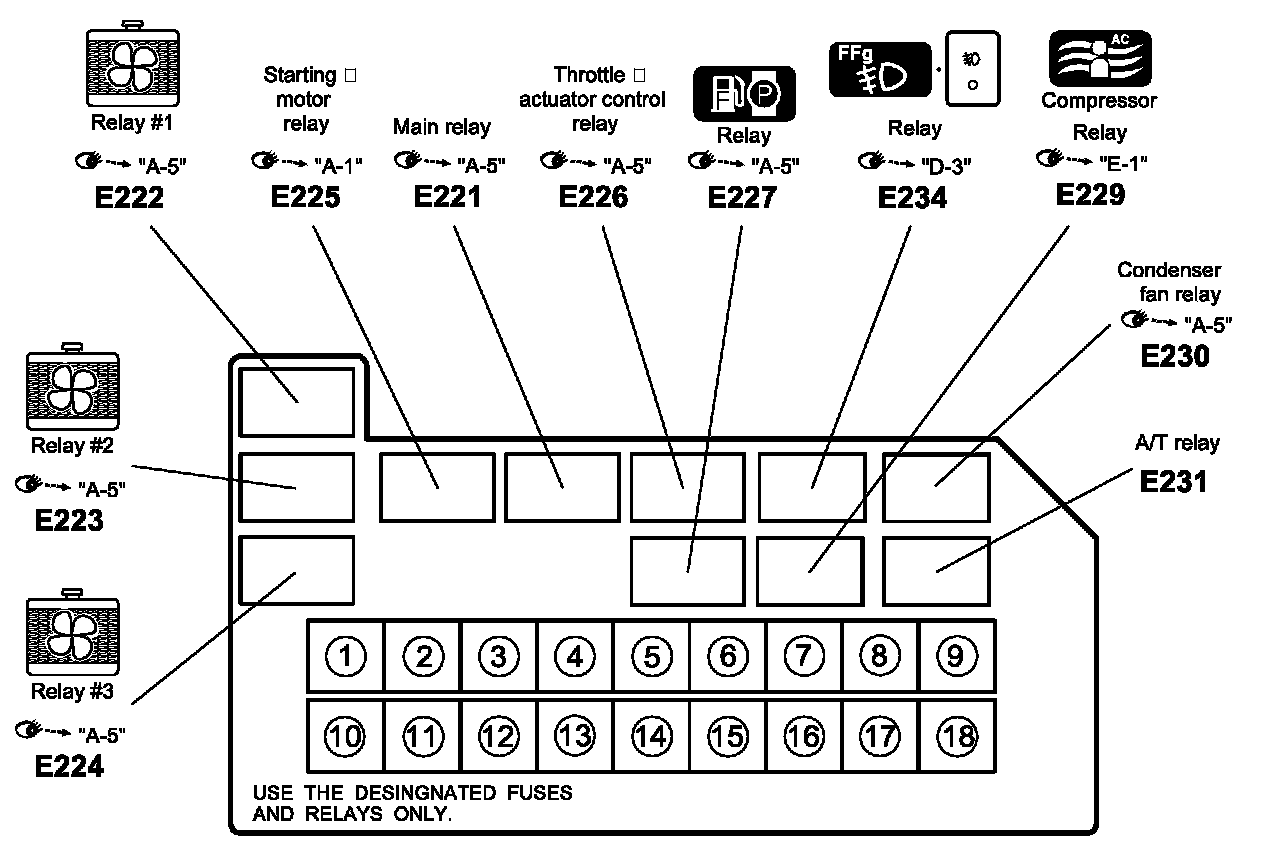 Main Relay (Computer/Fuel System): Locations