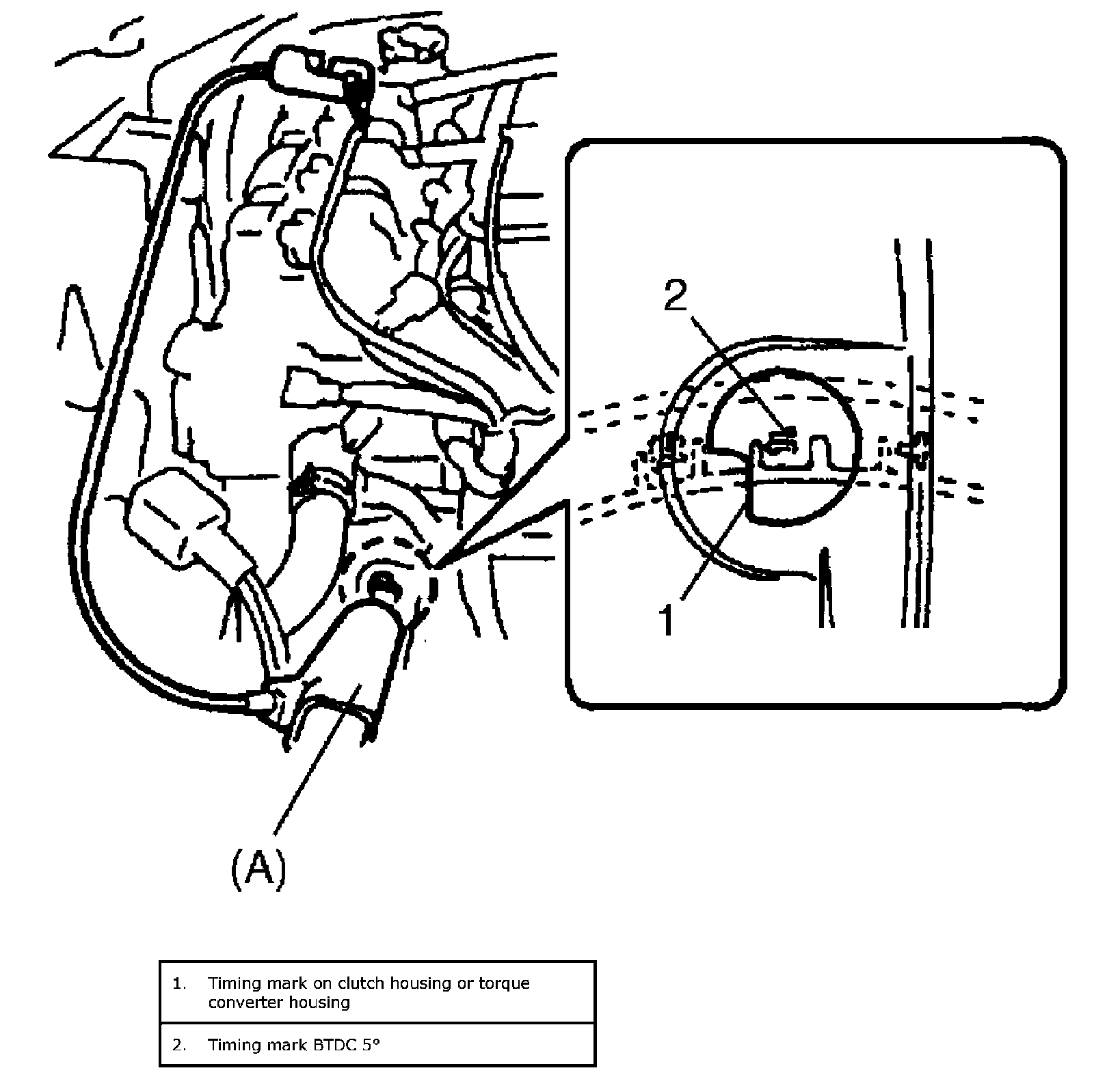 1. Detach timing hole cover (1).
