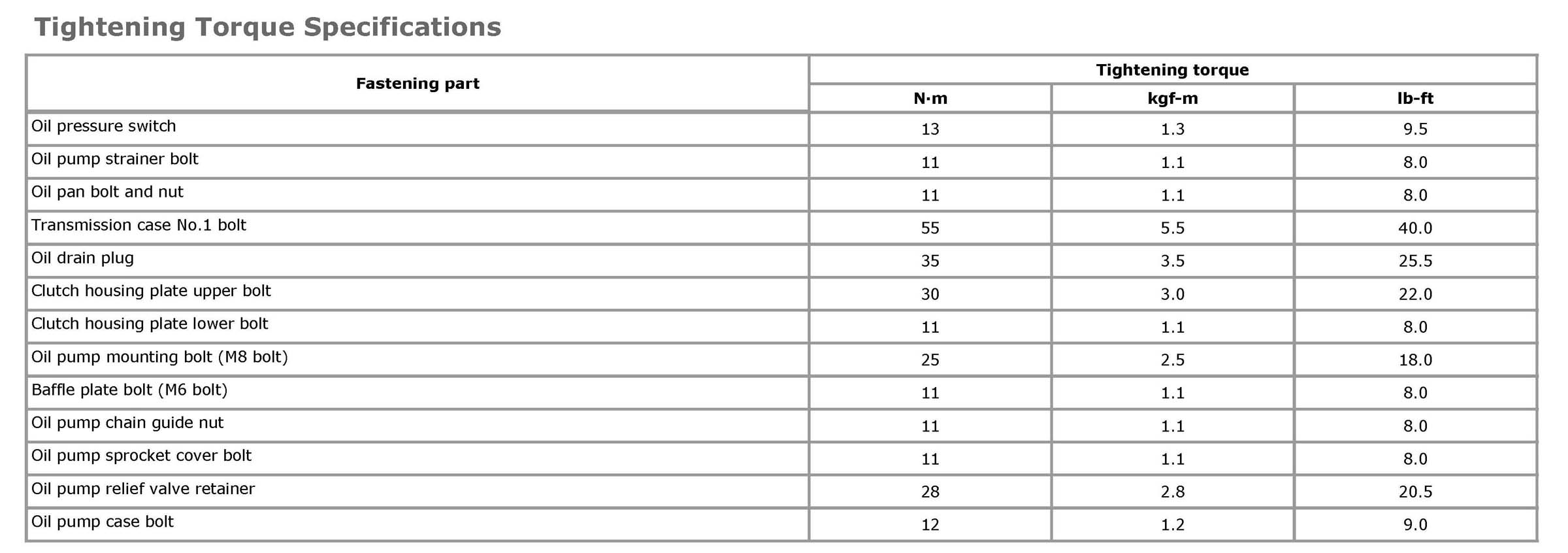 Tightening Torque SpecificationsNOTE: The specified tightening torque is also described in the following.