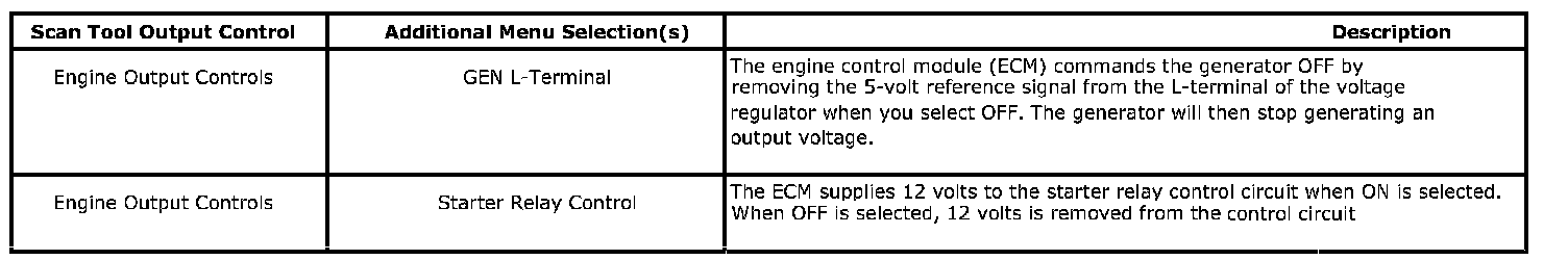 Scan Tool Output Controls - Engine Electrical: