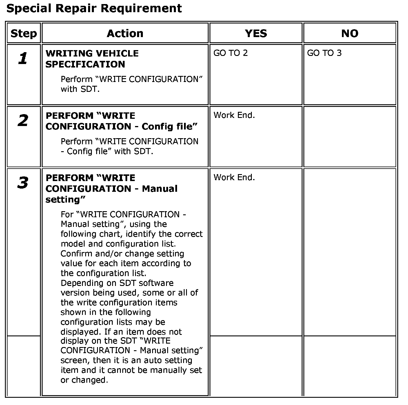 - WRITE CONFIGURATION - Manual setting is the function to select and write vehicle configuration on BCM manually.