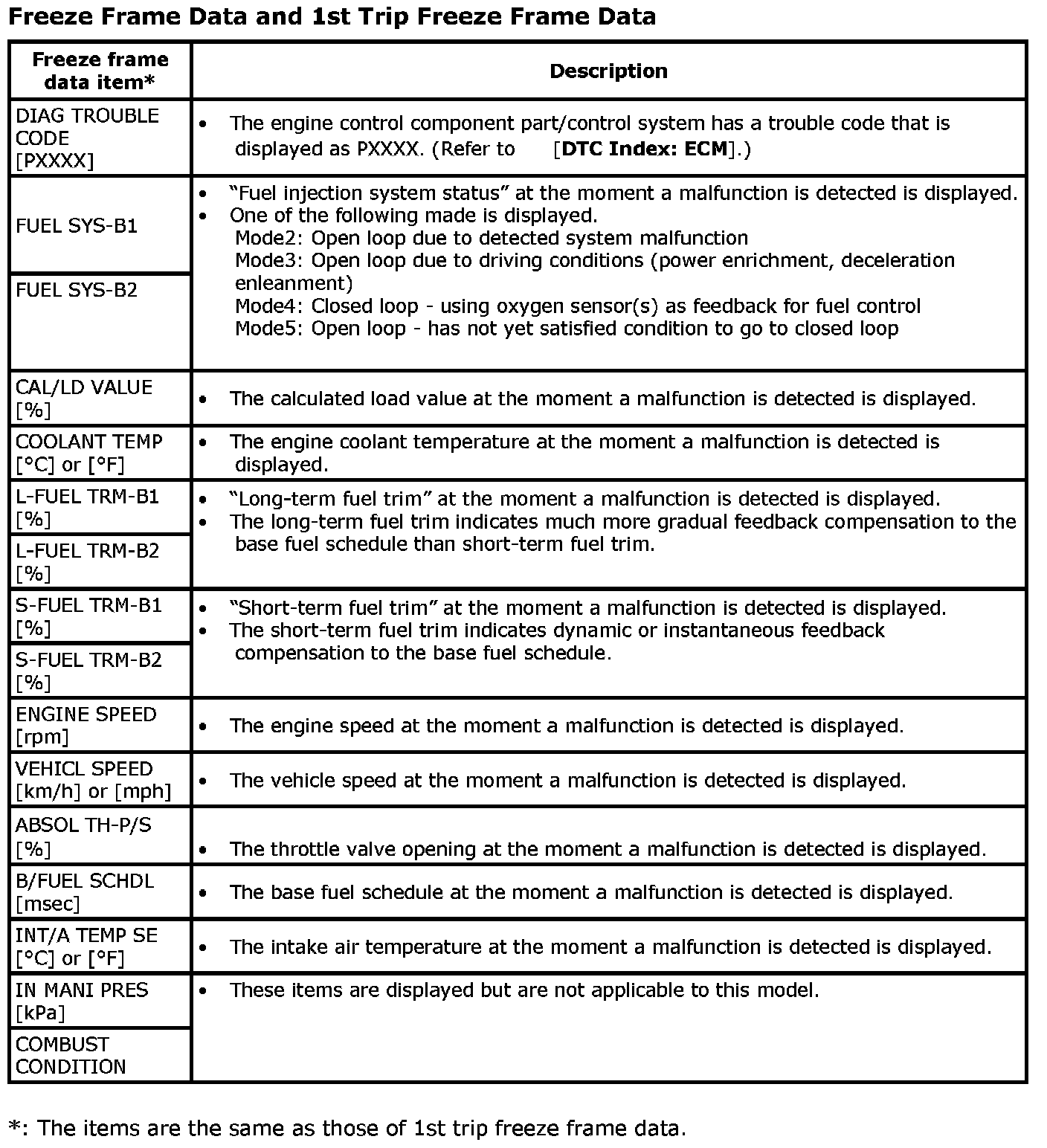 Regarding items of "DTC and 1st trip DTC", refer to [DTC Index: ECM].
