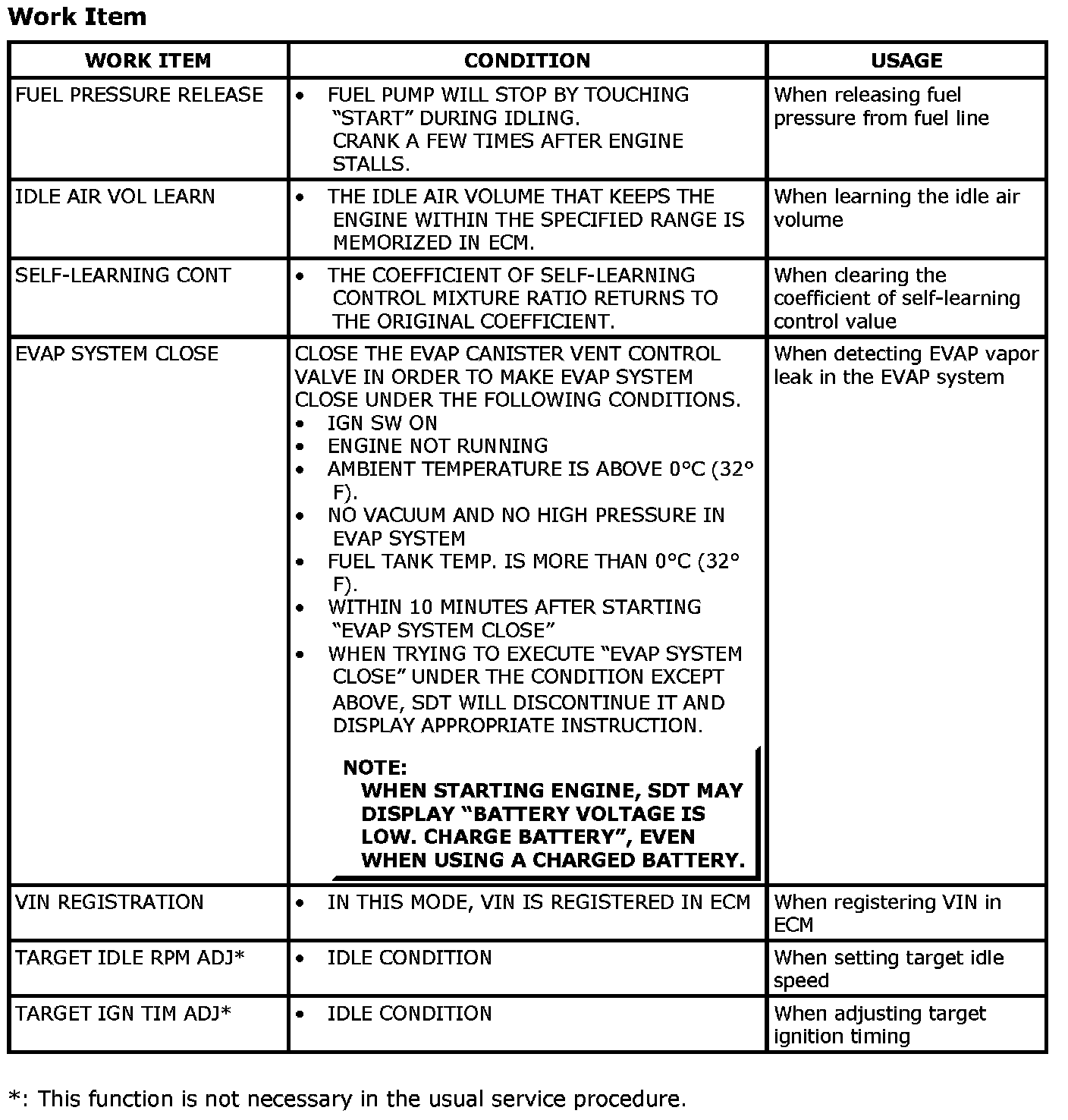 Utility Mode (Readiness Test / DTC Work Support)