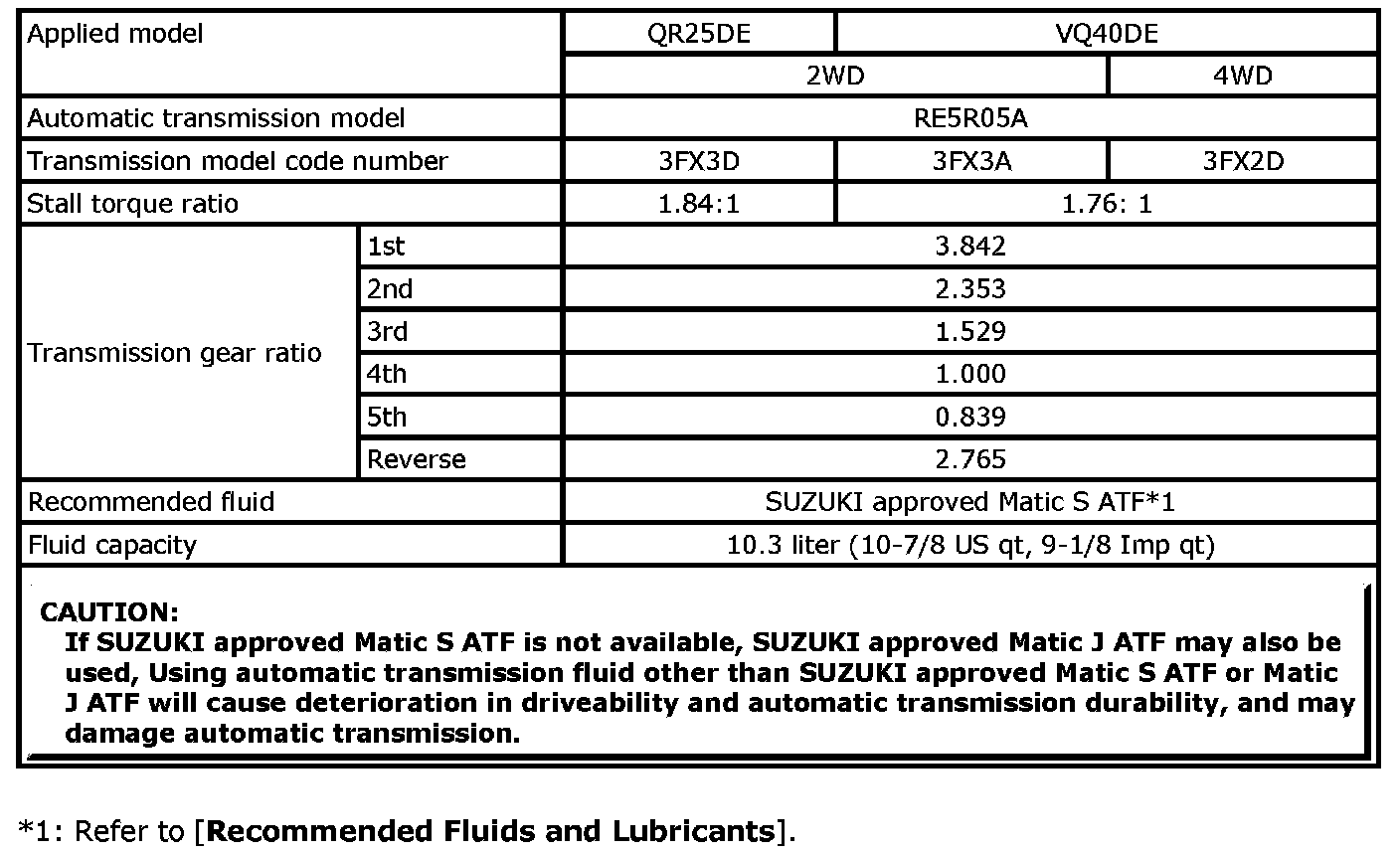 *1: Refer to [Recommended Fluids and Lubricants].
