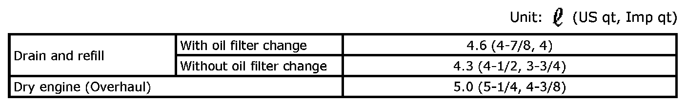 Engine OIL Capacity (Approximate)