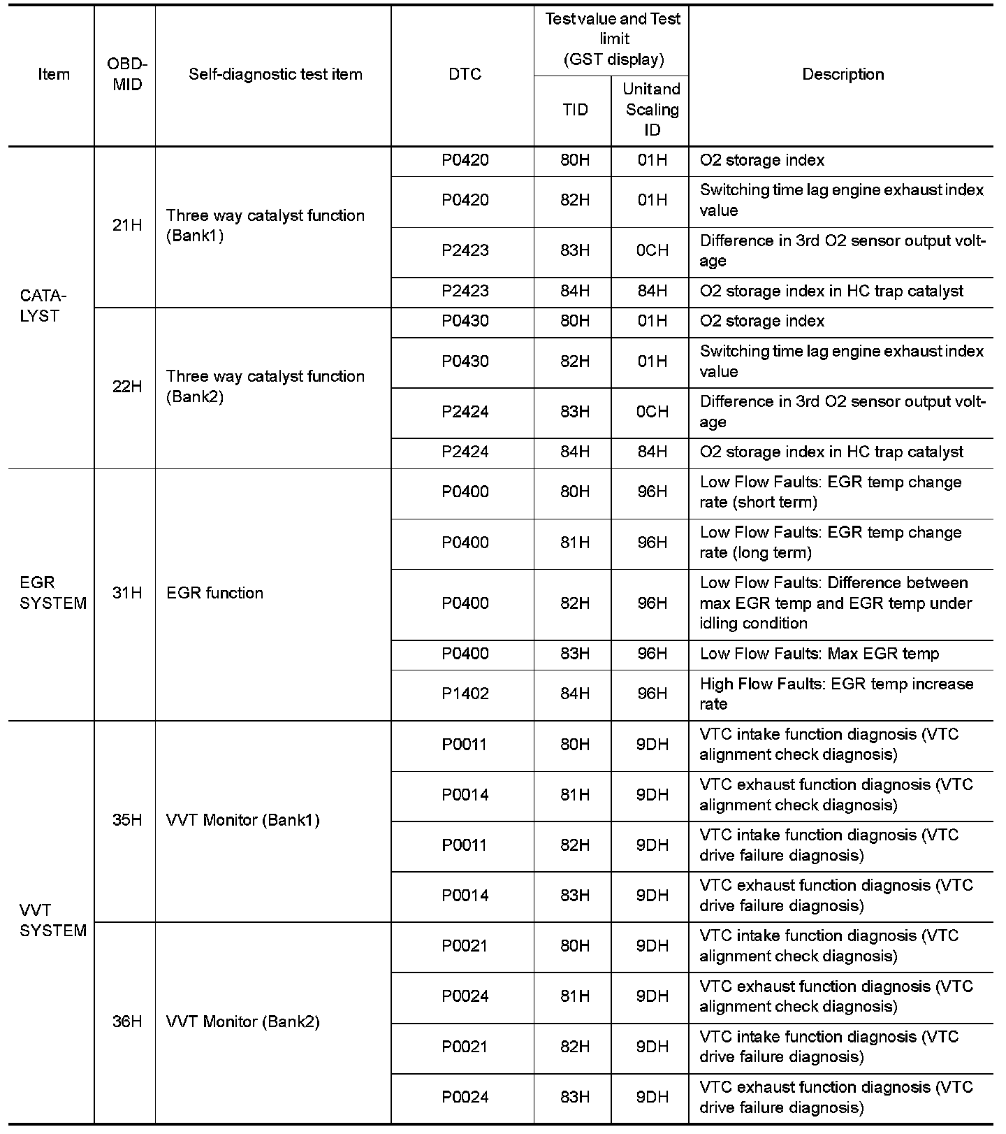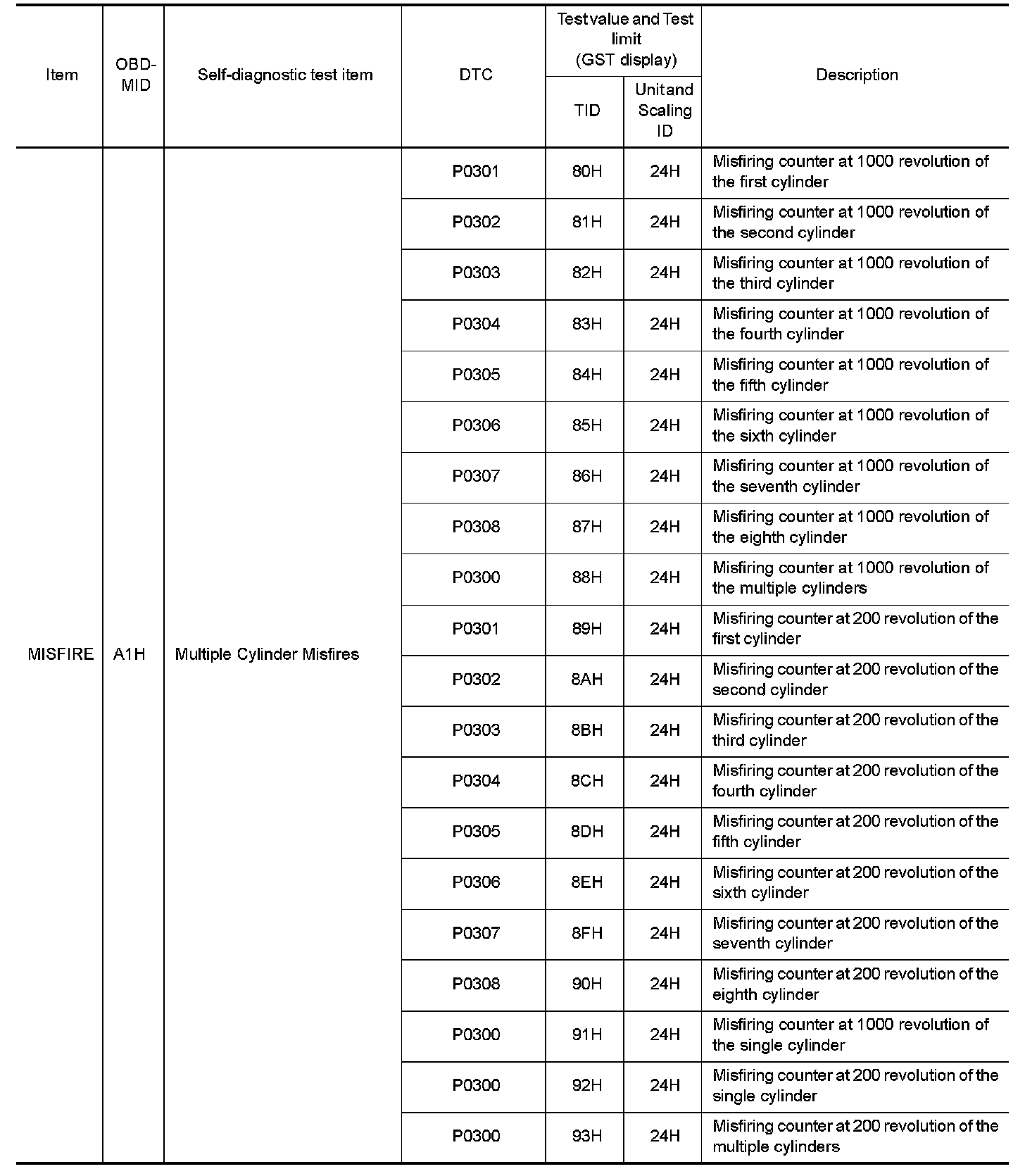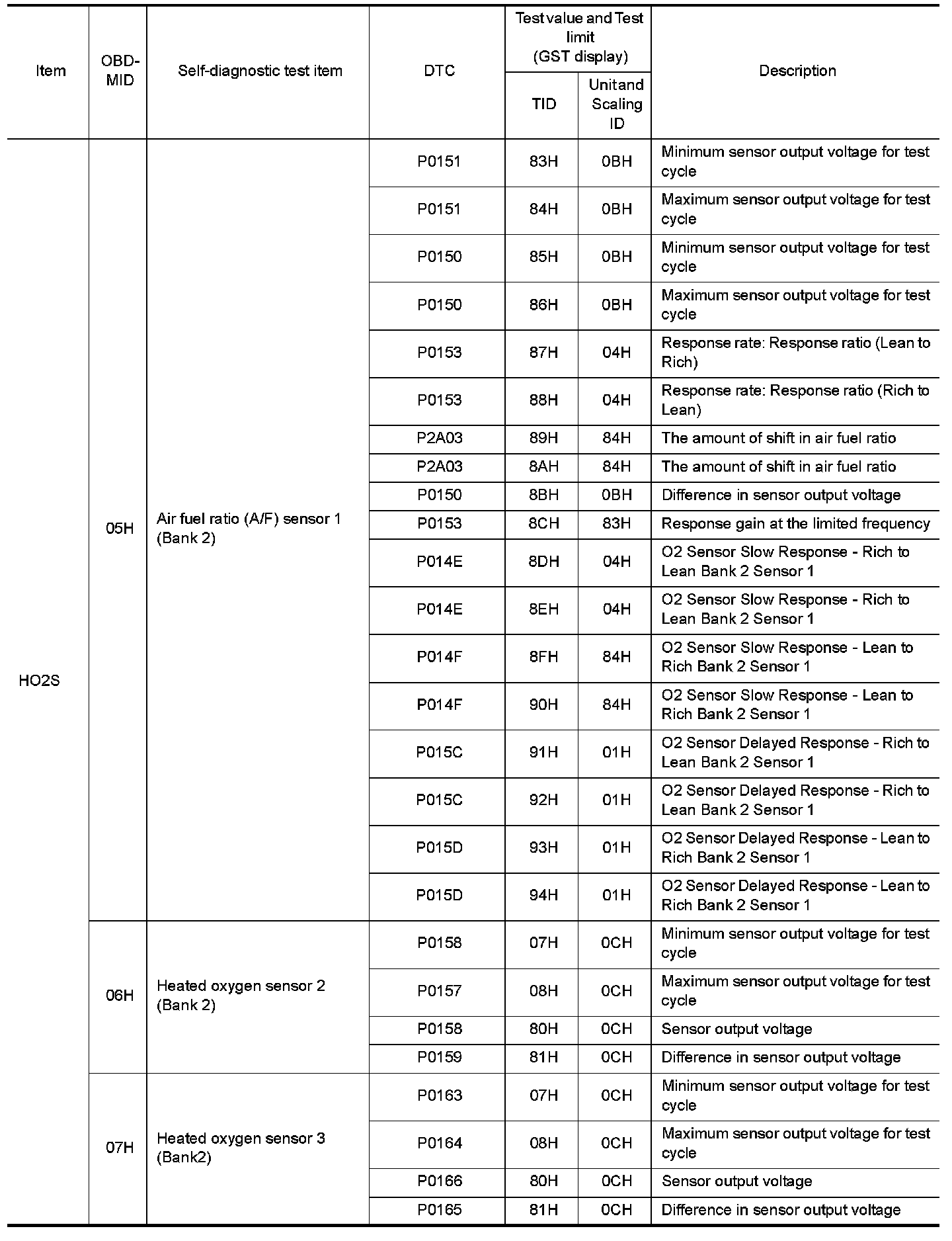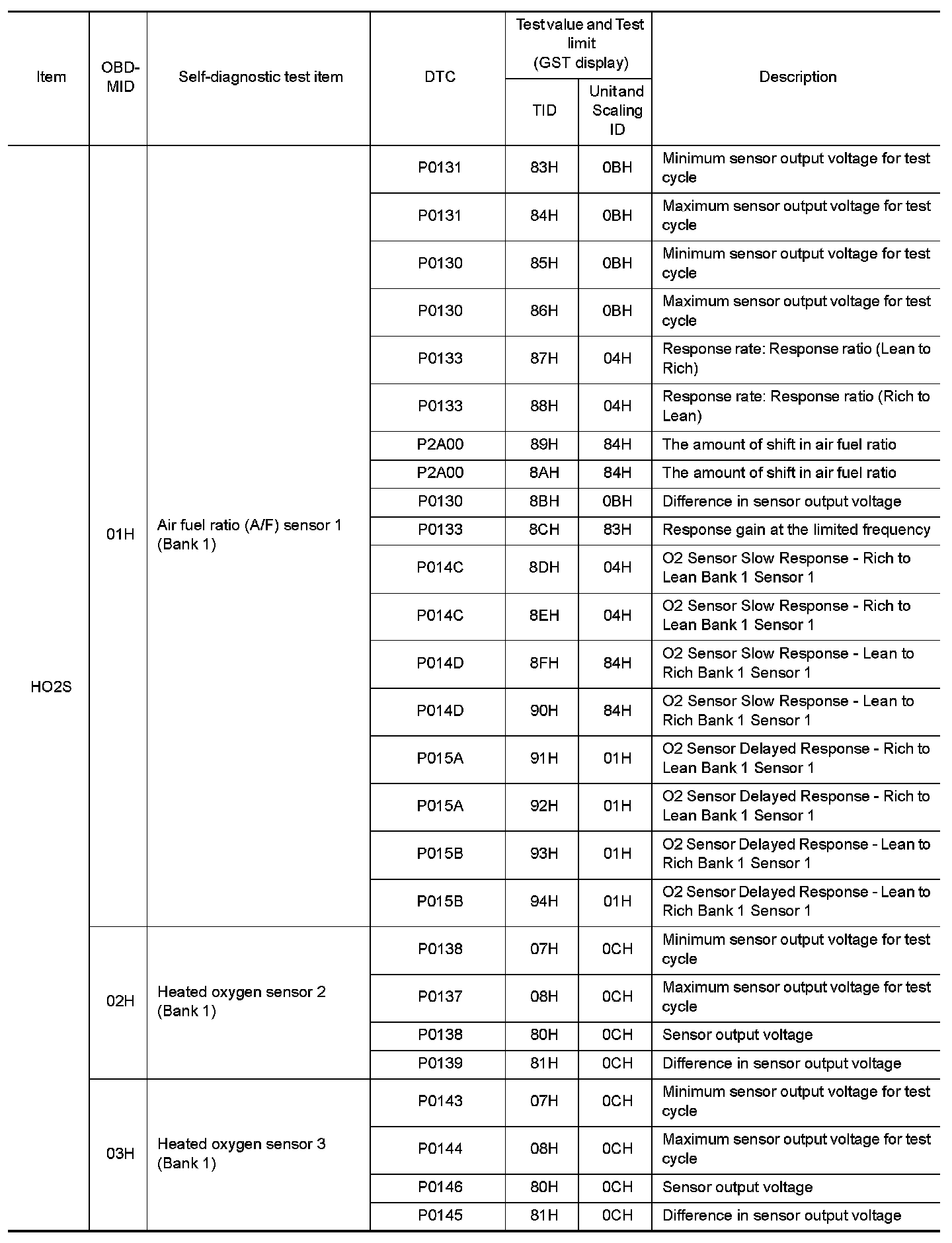 These data (test value and test limit) are specified by On Board Monitor ID(OBDMID), Test ID (TID), Unit and