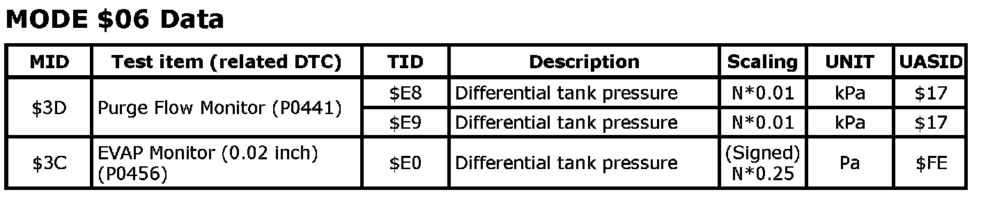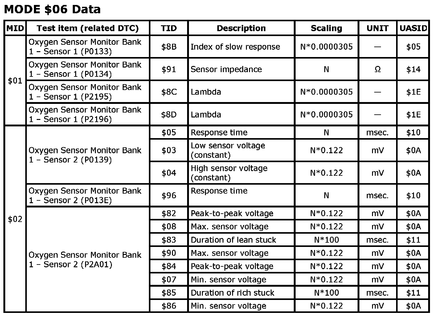 MODE $06 Data