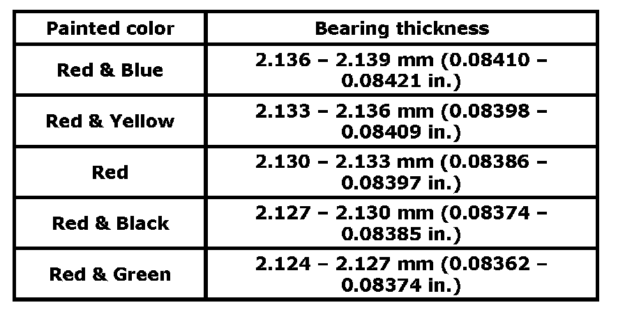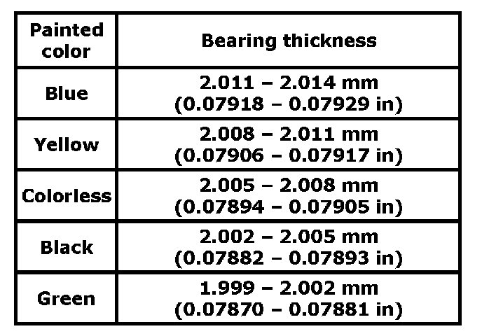 Standard size crankshaft main bearing thickness