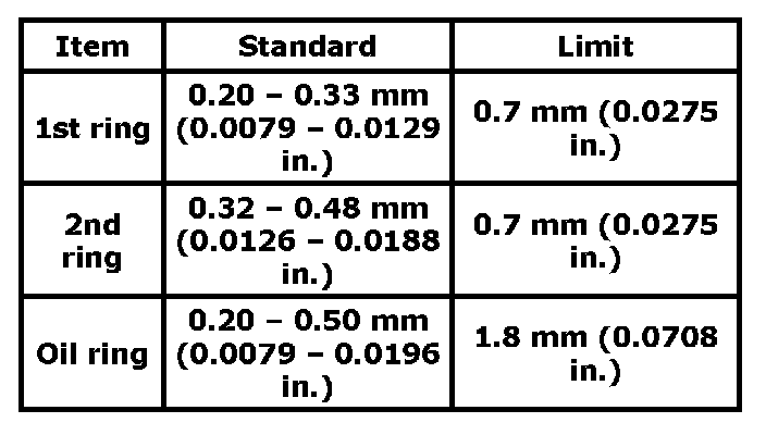 Cylinder block flatness limit 0.03 mm (0.001 in.)Cylinder bore diameter