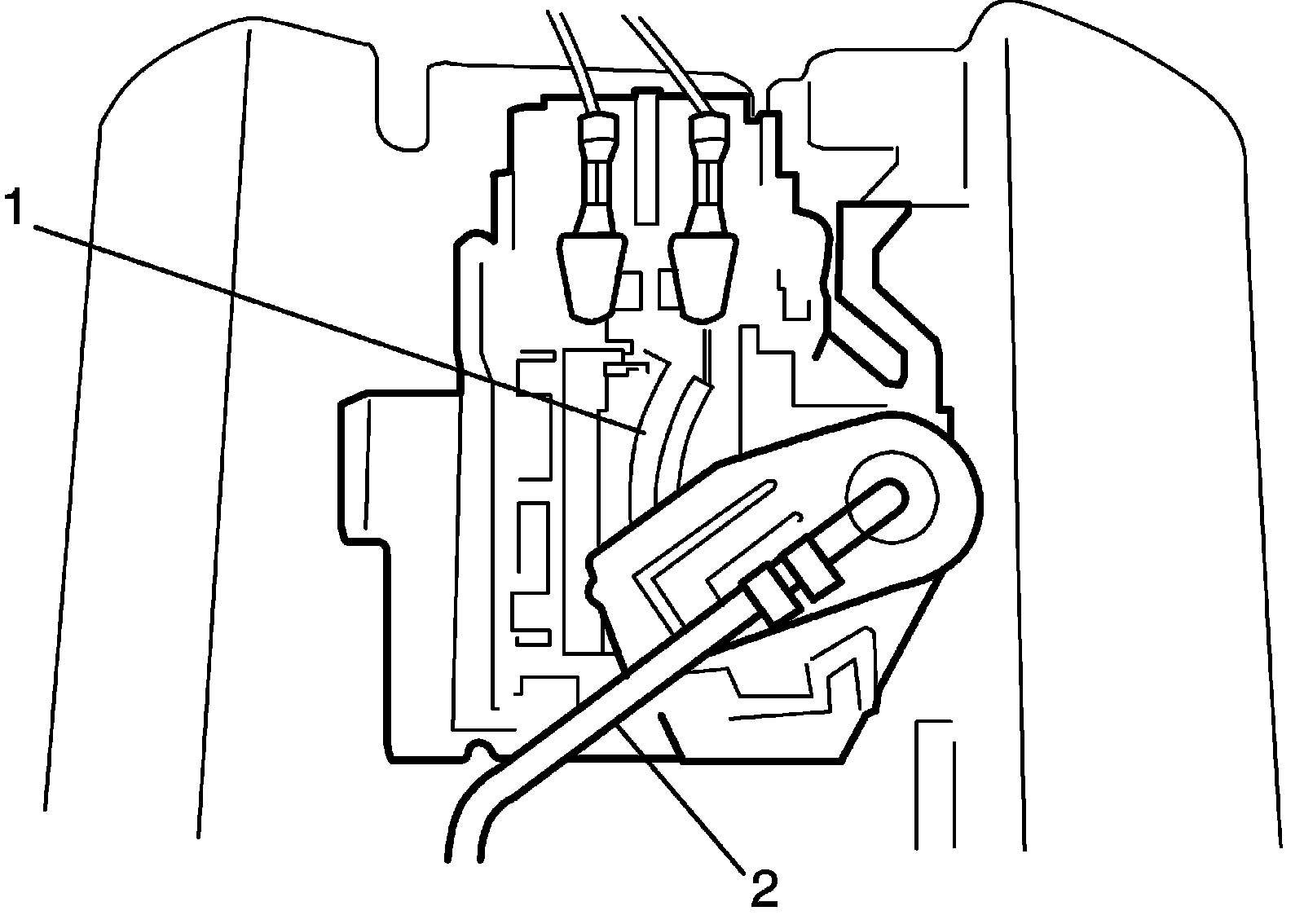 - Do not touch resister plate (1) and deform arm (2). It may cause main fuel level sensor to fail.