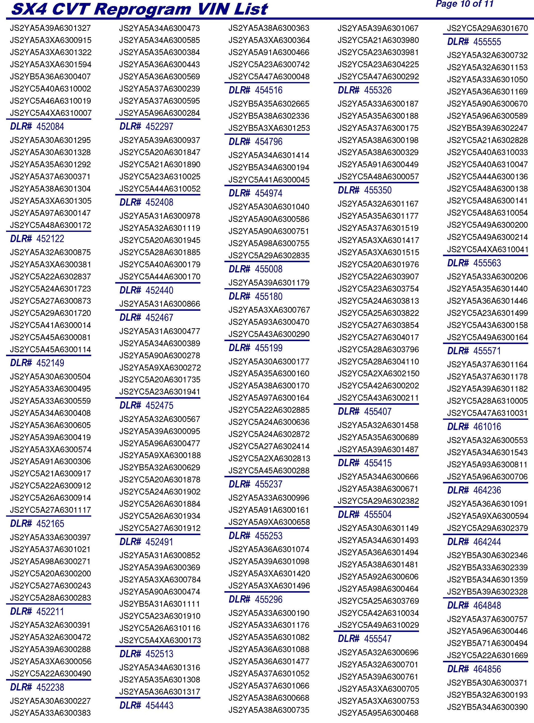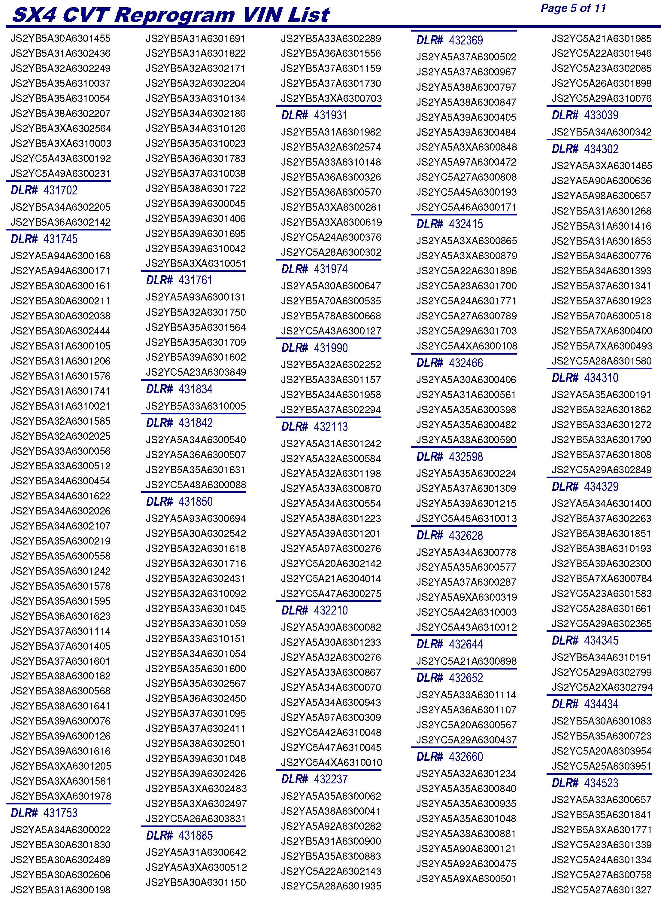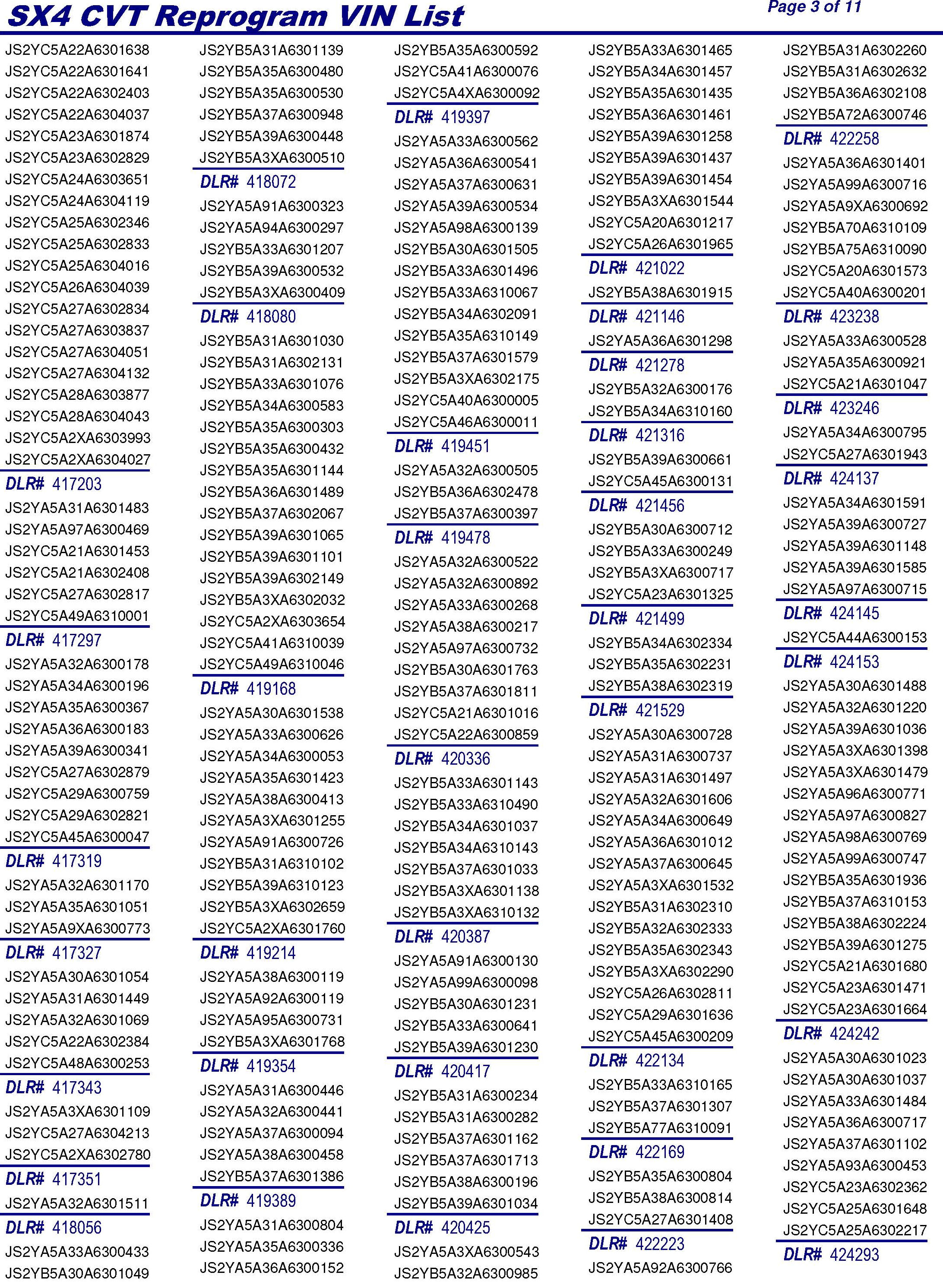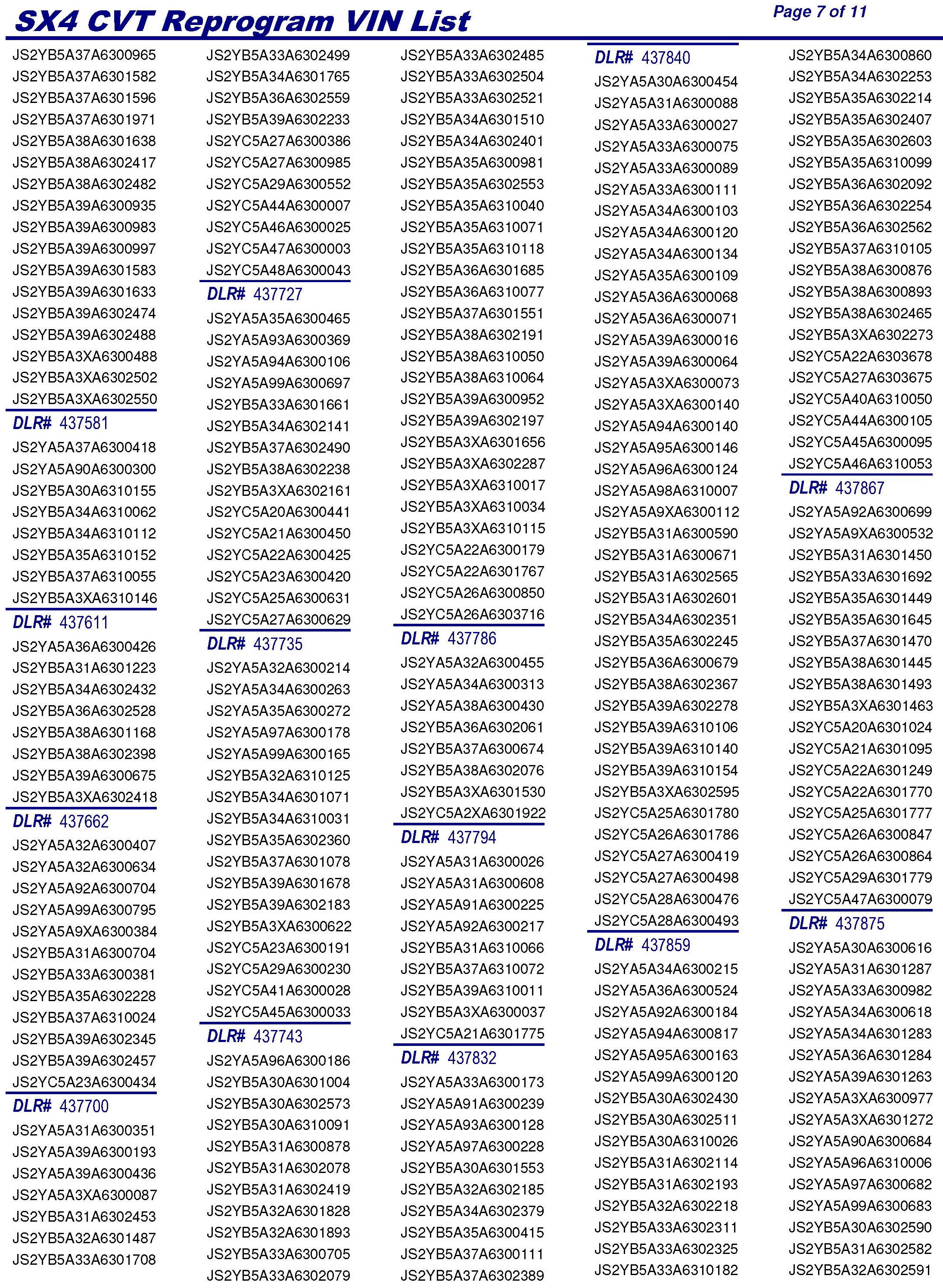 PLEASE REFER TO THE VIN LIST TO FIND ANY VEHICLES