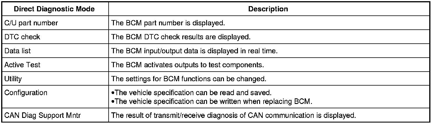 BCM can perform the following functions.