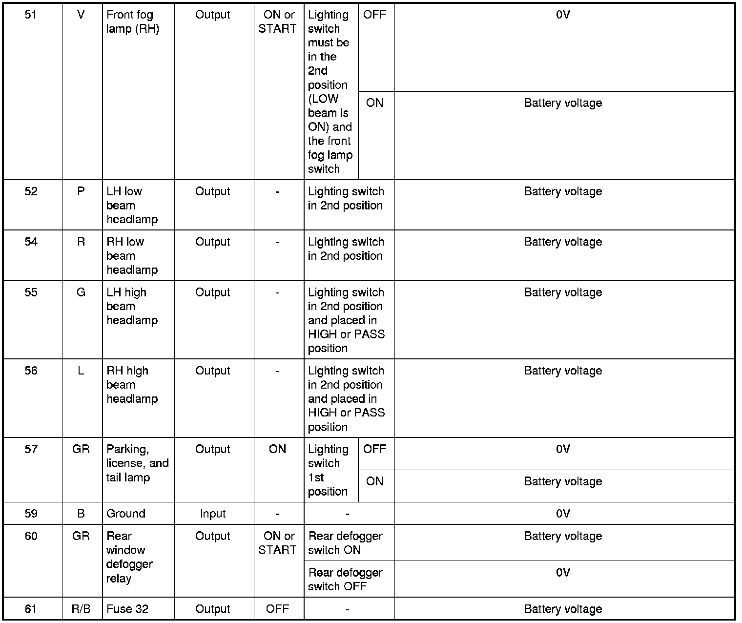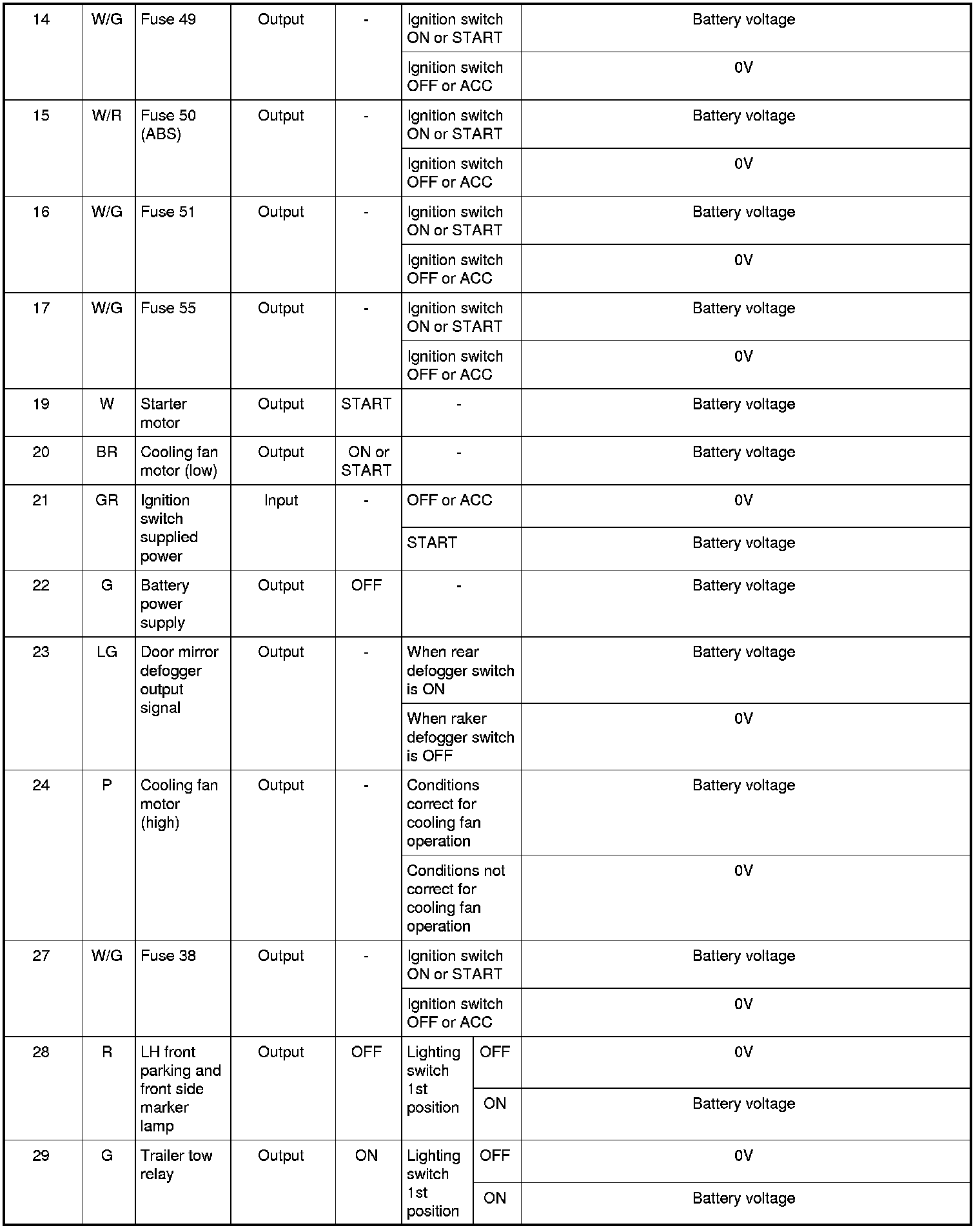 Pinout Values and Diagnostic Parameters
